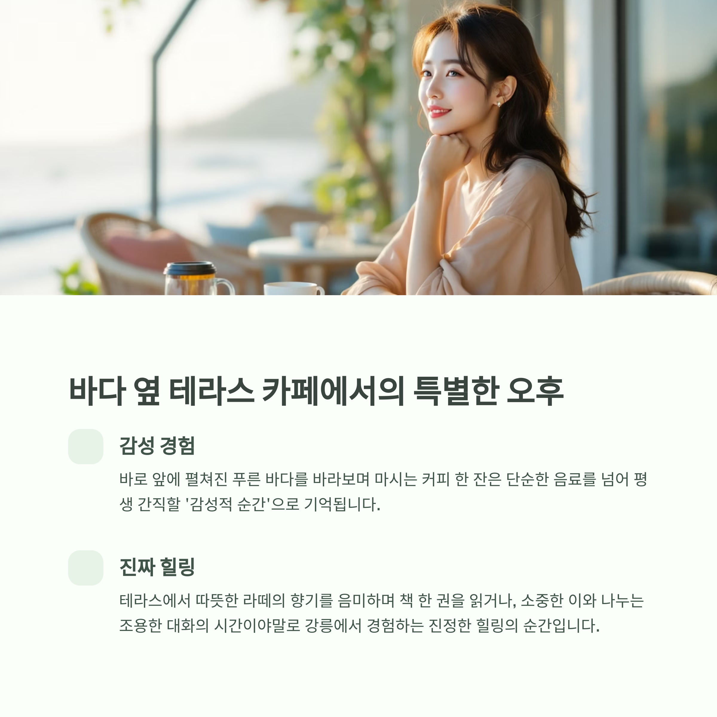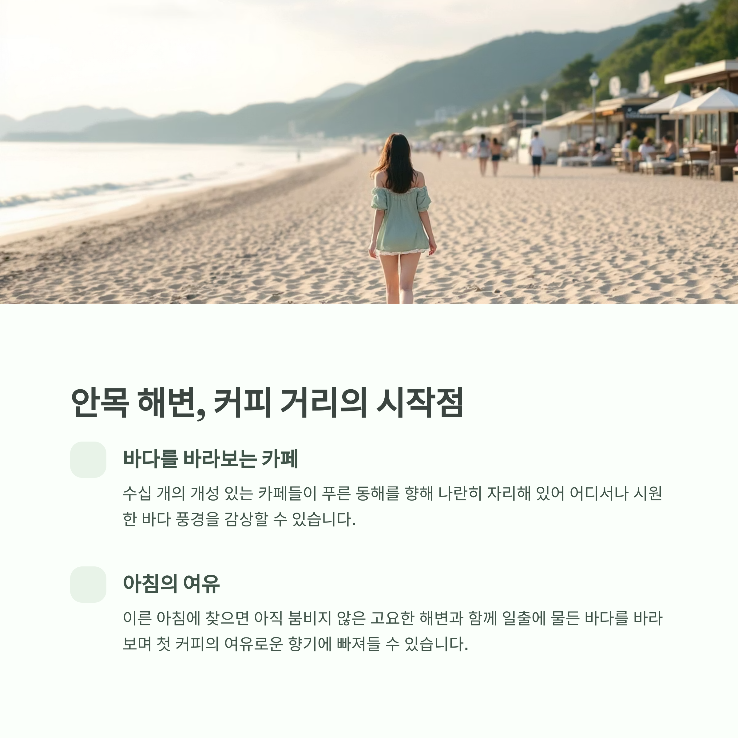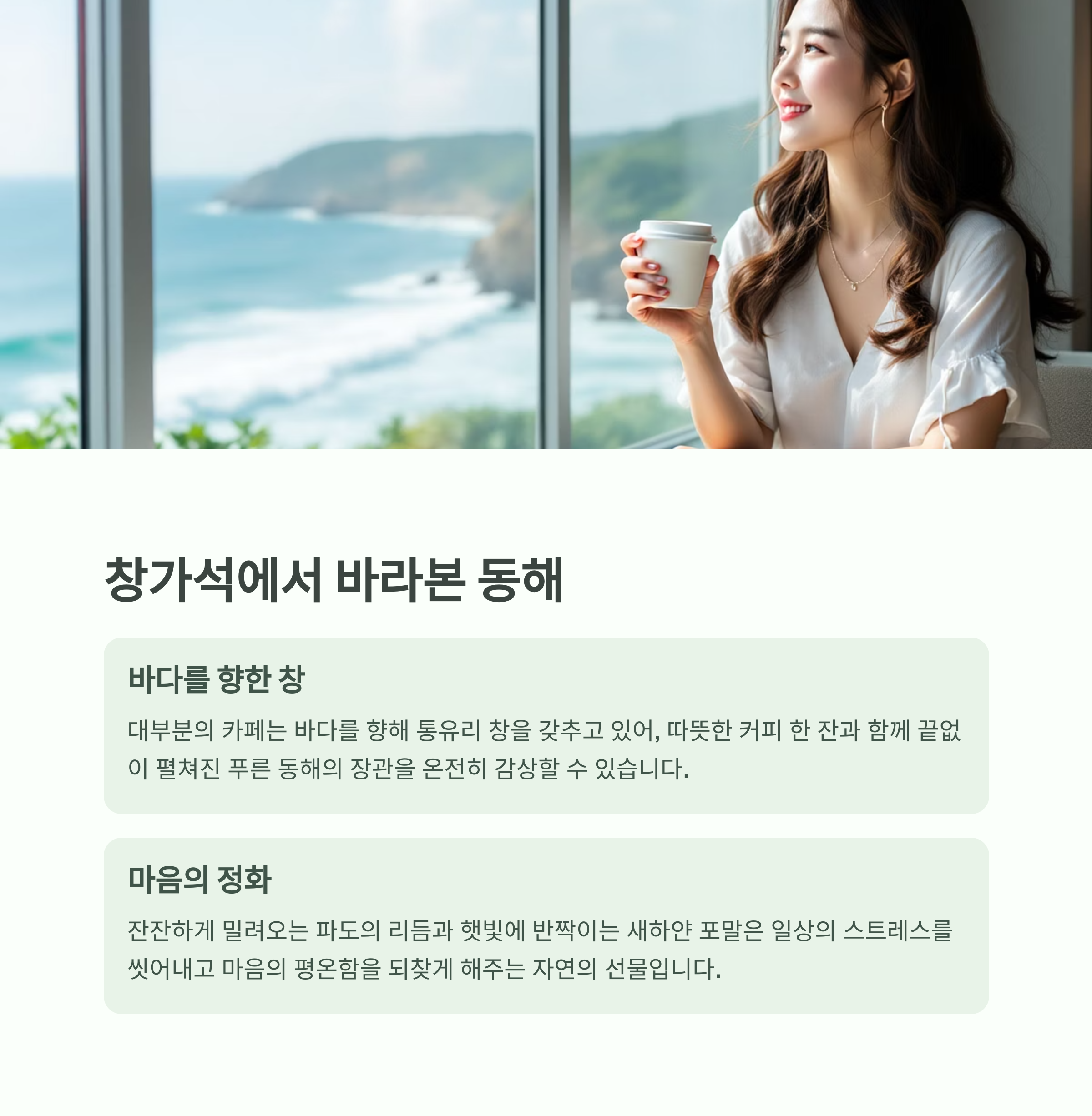 바다와 커피, 그리고 걷는 시간을 통해 일상에 여백을 선물받는 곳입니다