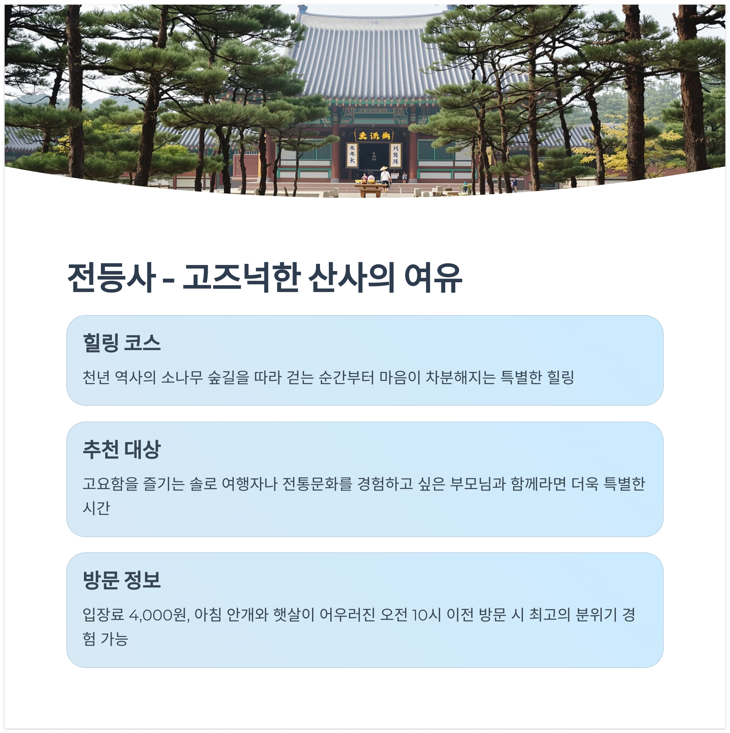 산책과 조용한 사찰 체험을 동시에 할 수 있어
