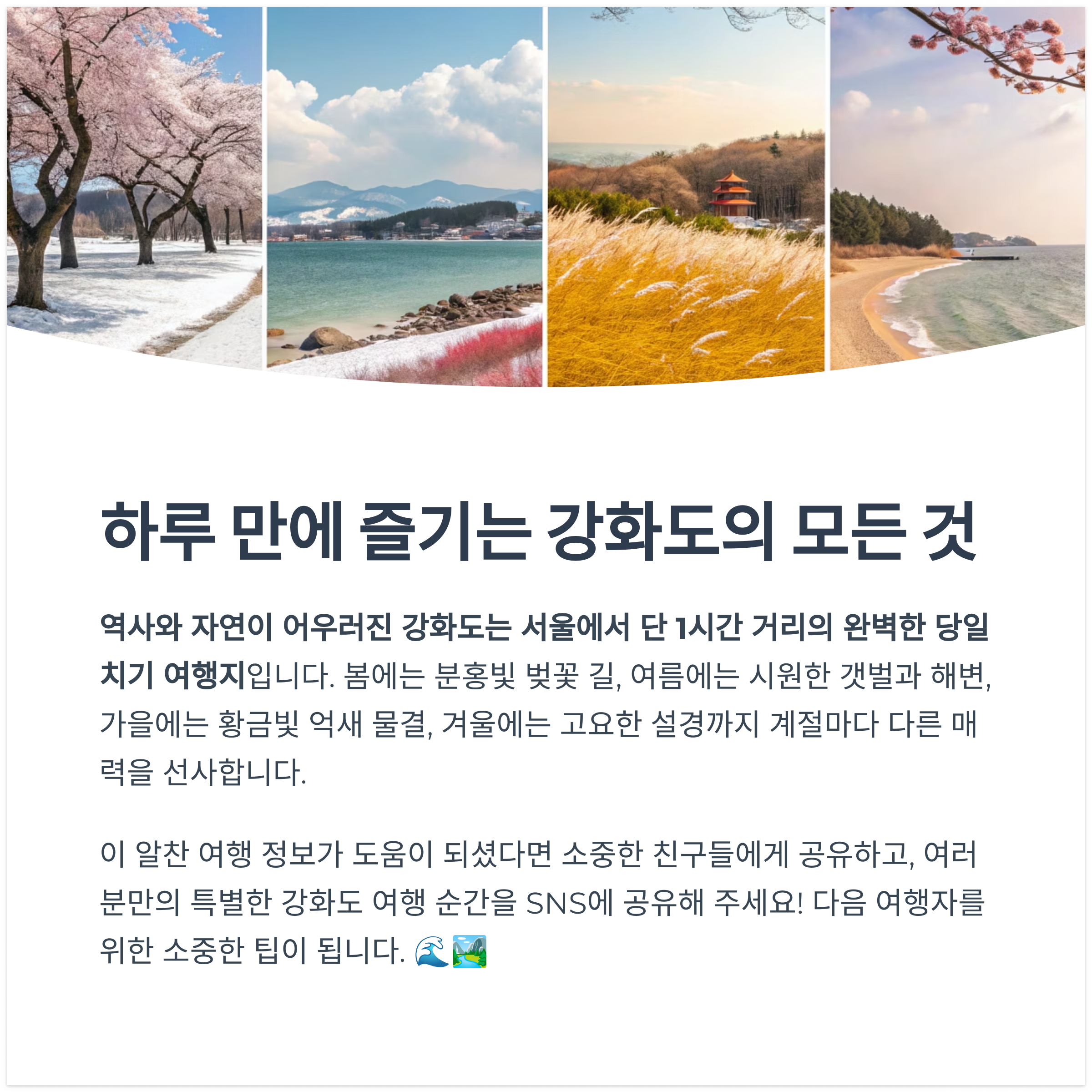“당일치기지만 오래 기억에 남을 여행, 강화도가 딱입니다.”