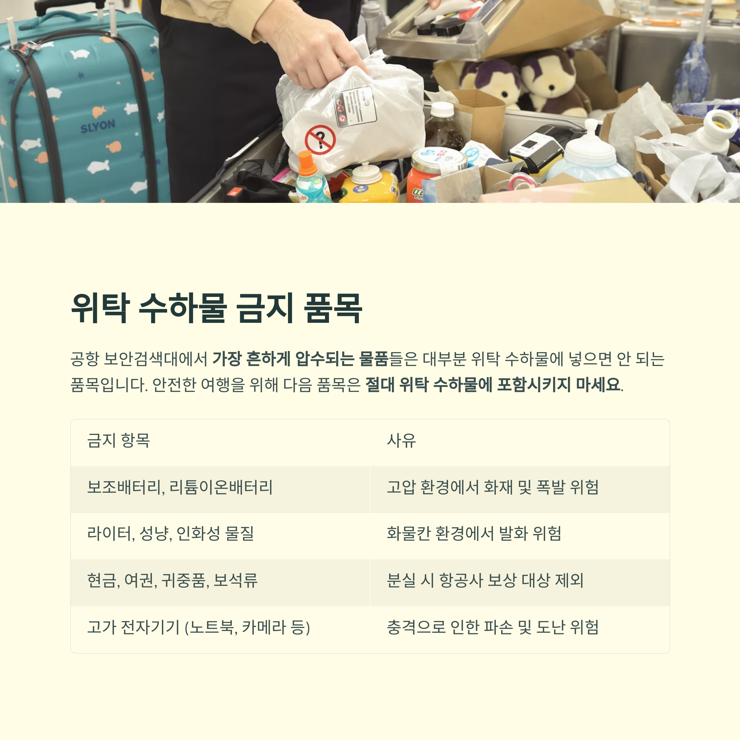 위탁 수하물에 넣으면 안 되는 금지 품목