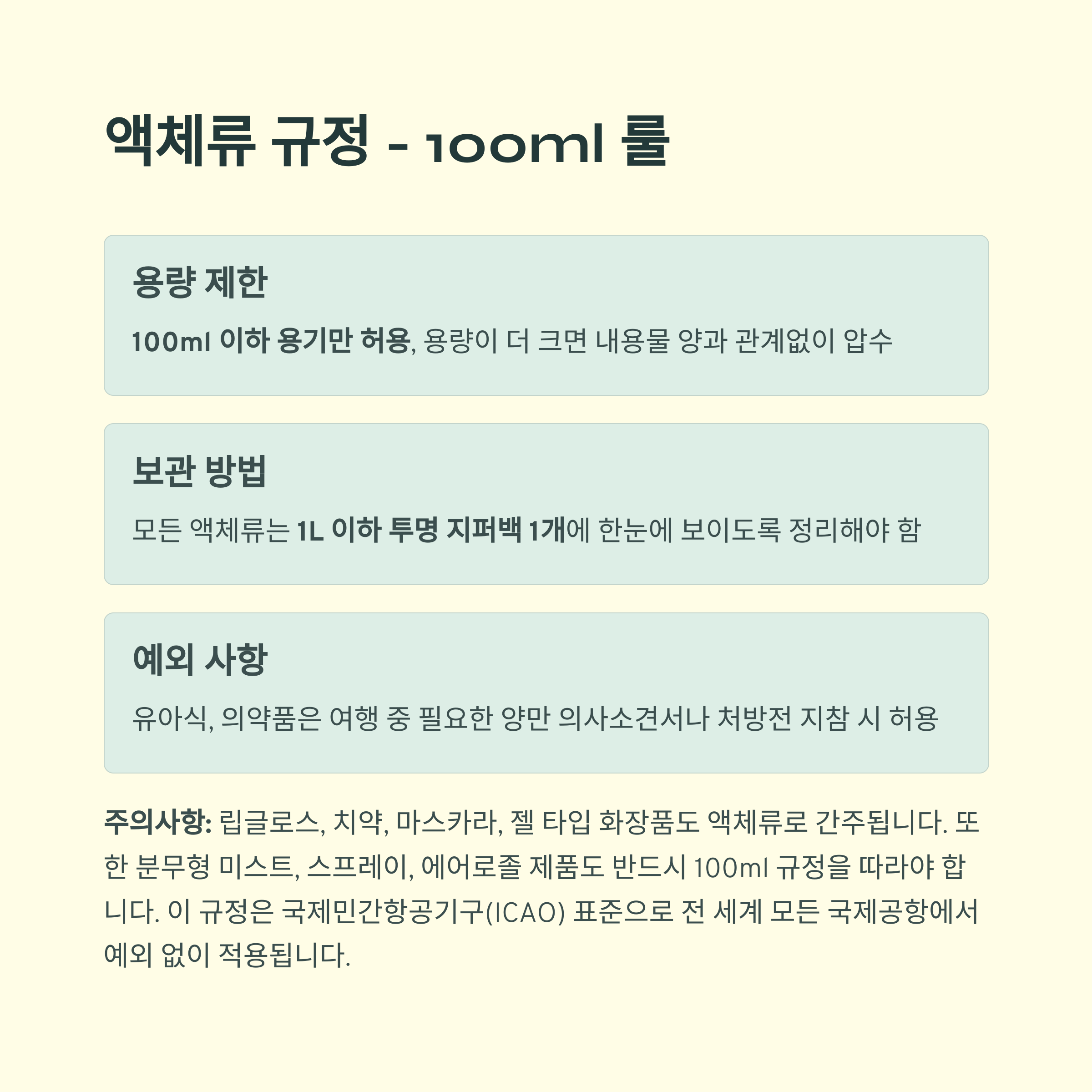 액체류 규정 – 100ml 초과 금지 & 지퍼백 필수