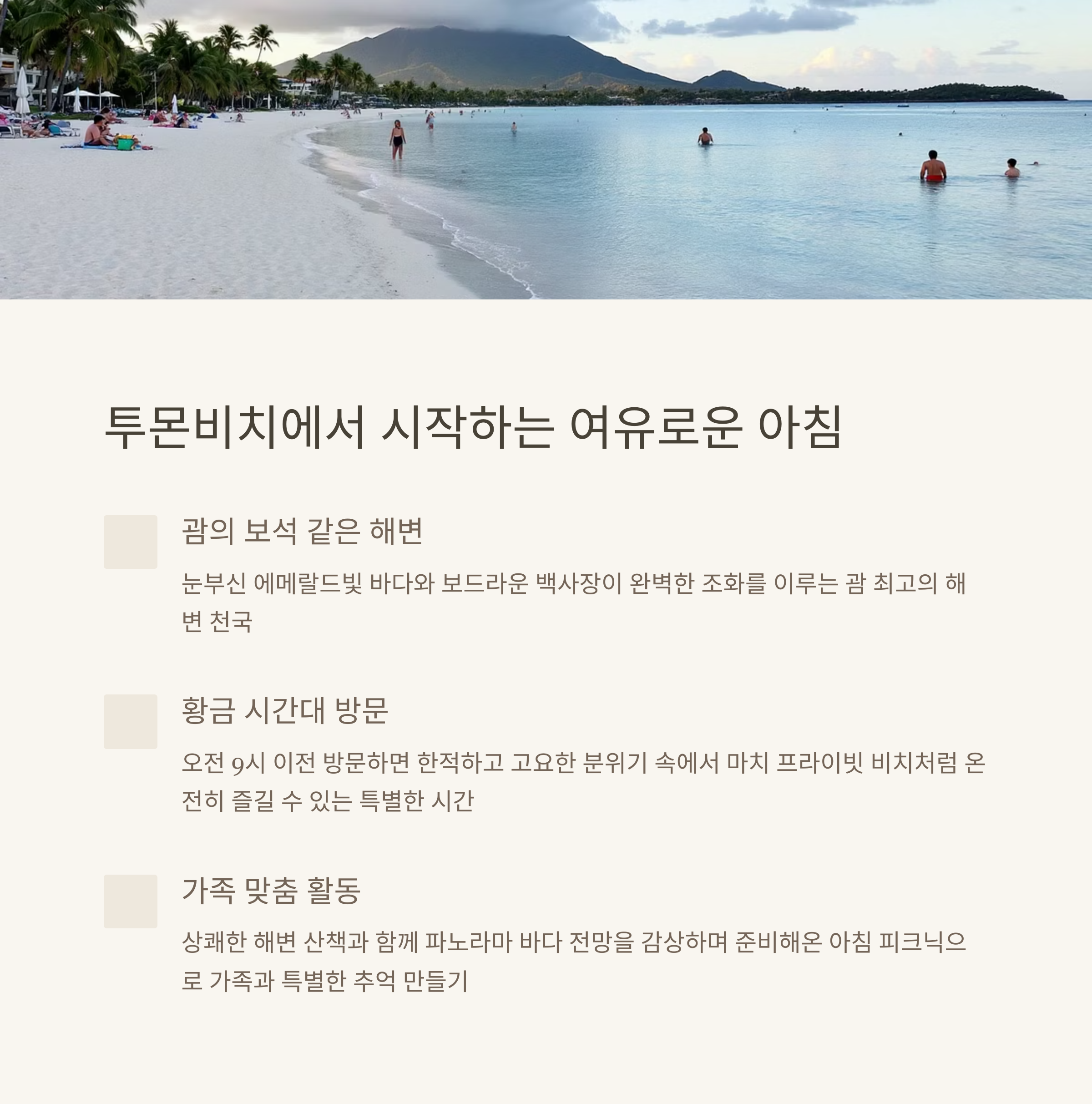 가벼운 산책과 함께하는 아침은 괌에서만 느낄 수 있는 특별한 순간입니다.