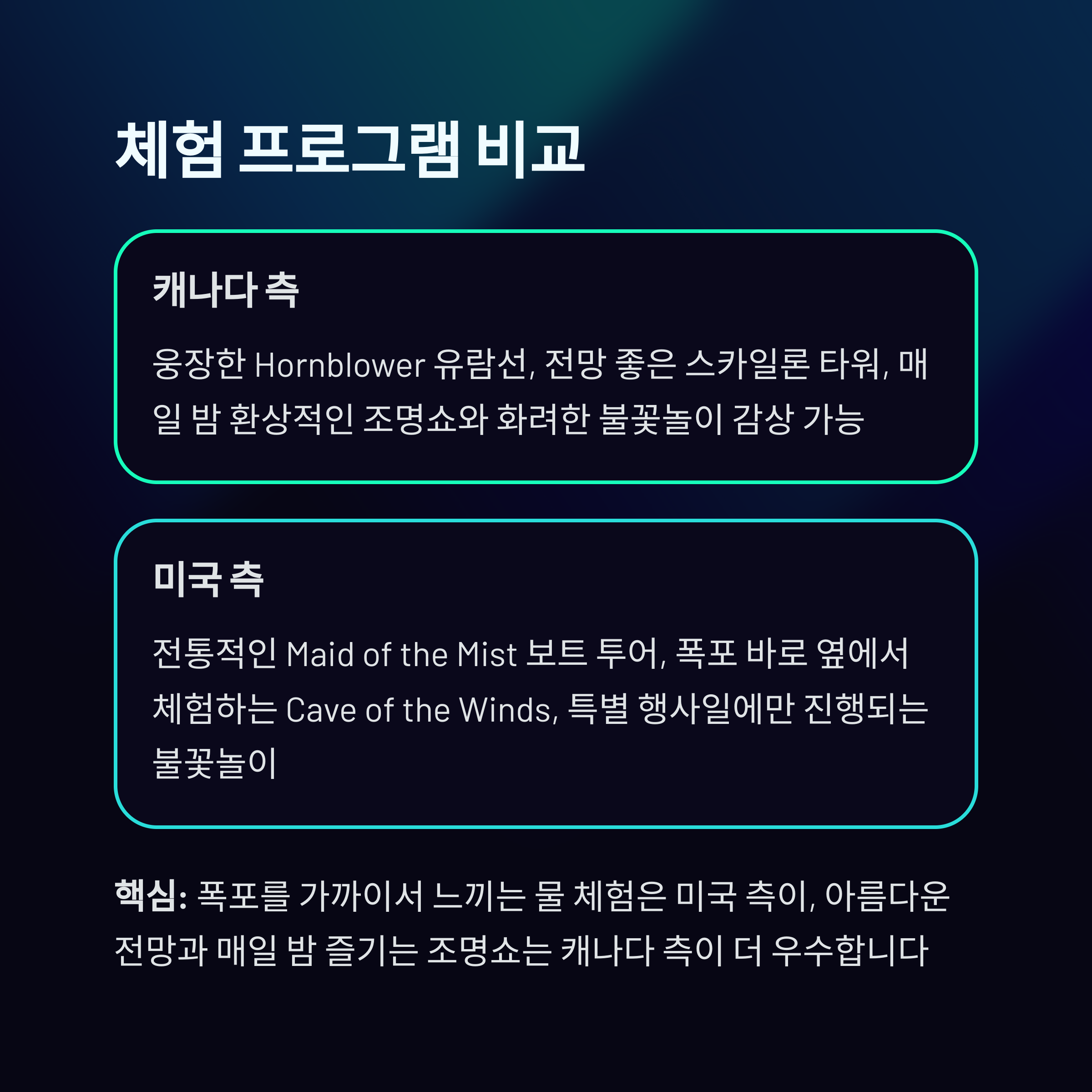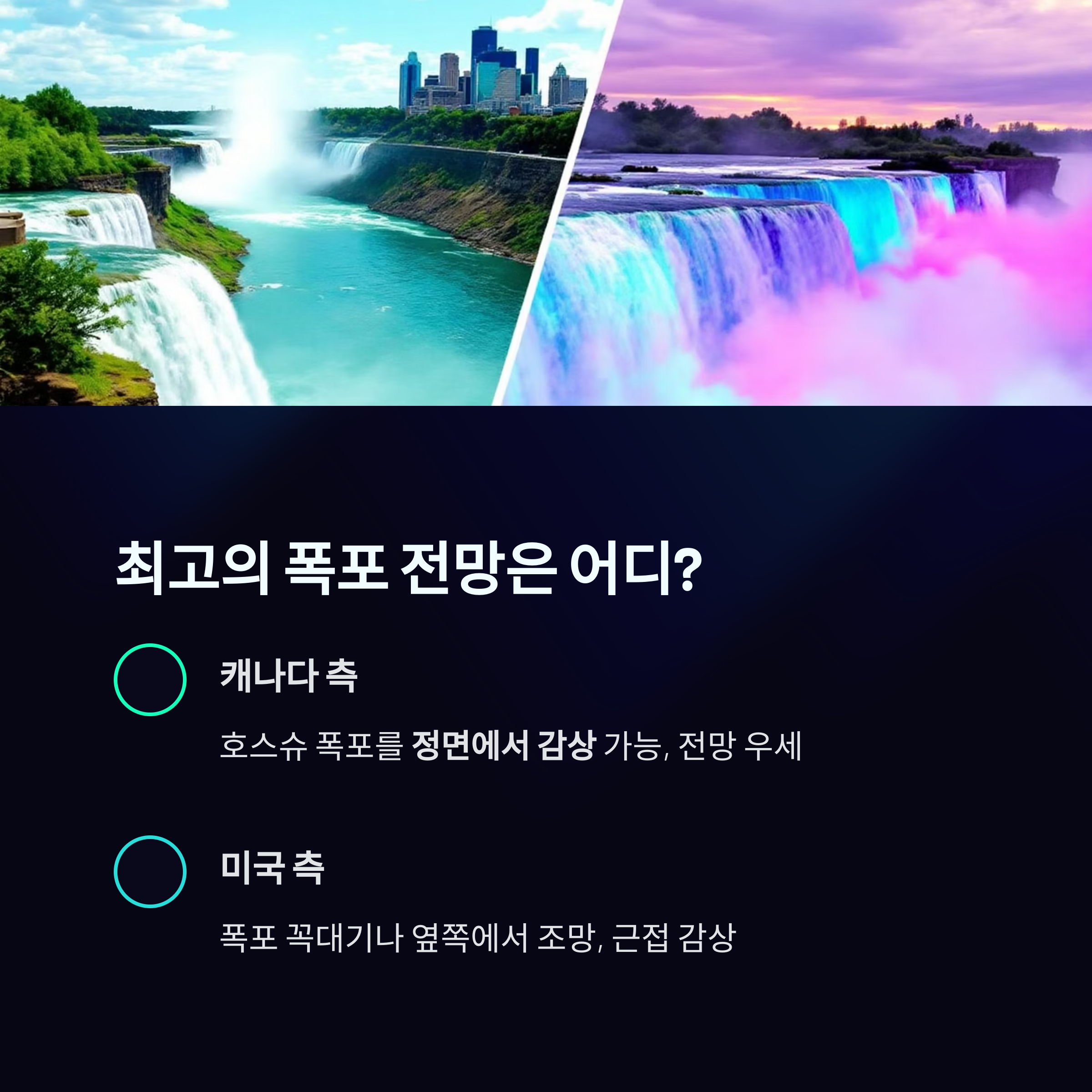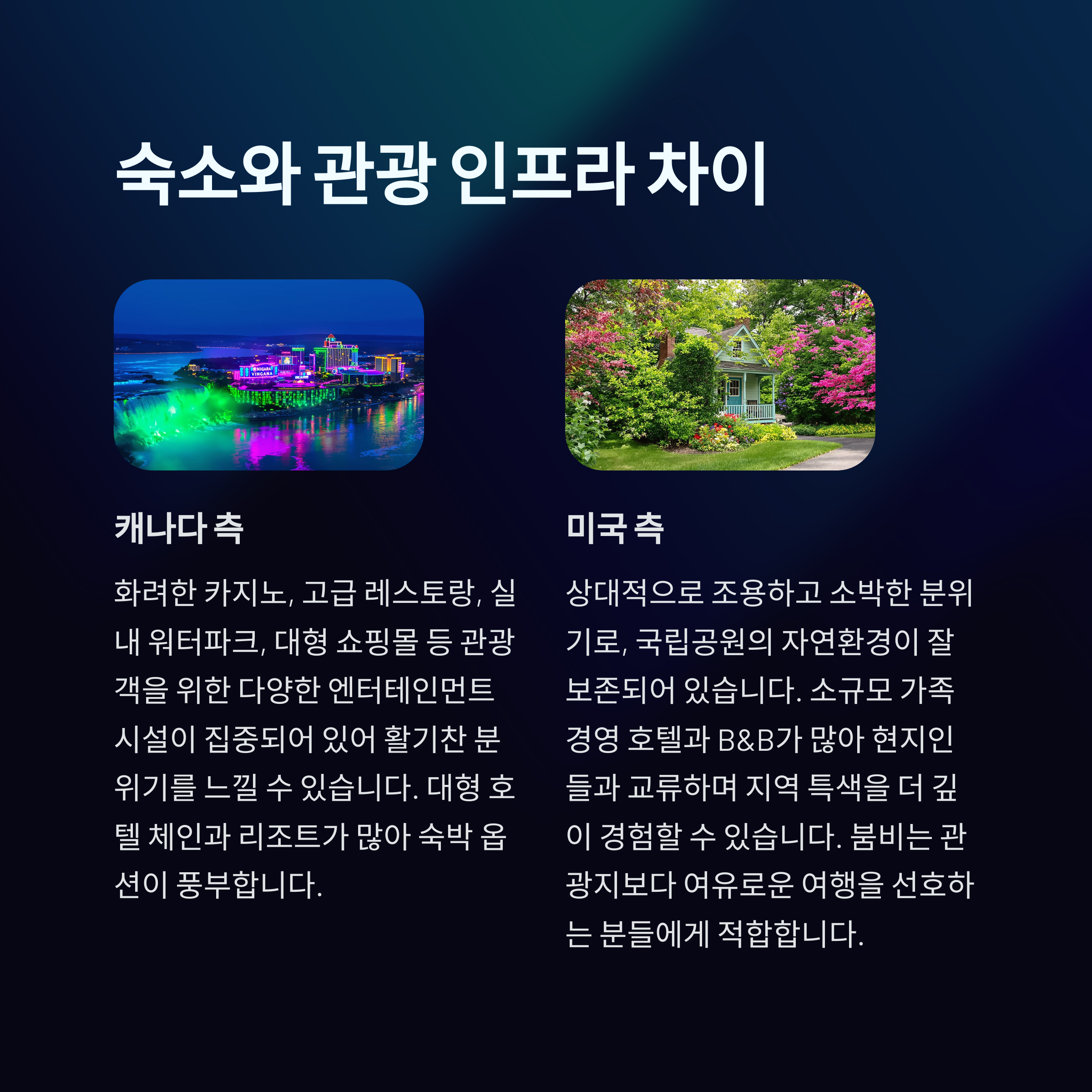 전망과 조명 감상은 캐나다 측이 강점"이에요.