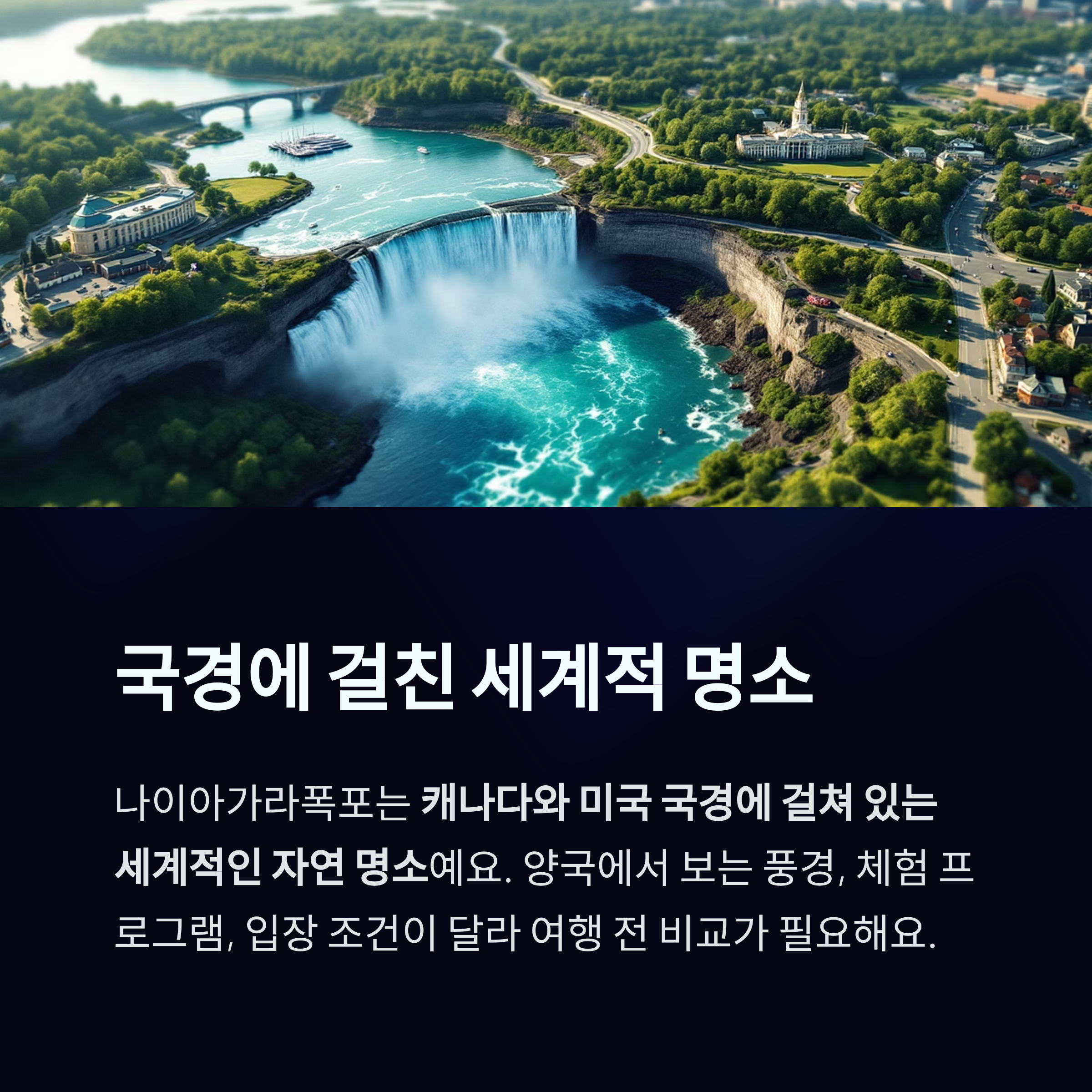 나이아가라폭포는 캐나다와 미국 국경에 걸쳐 있는 세계적인 자연 명소예요.