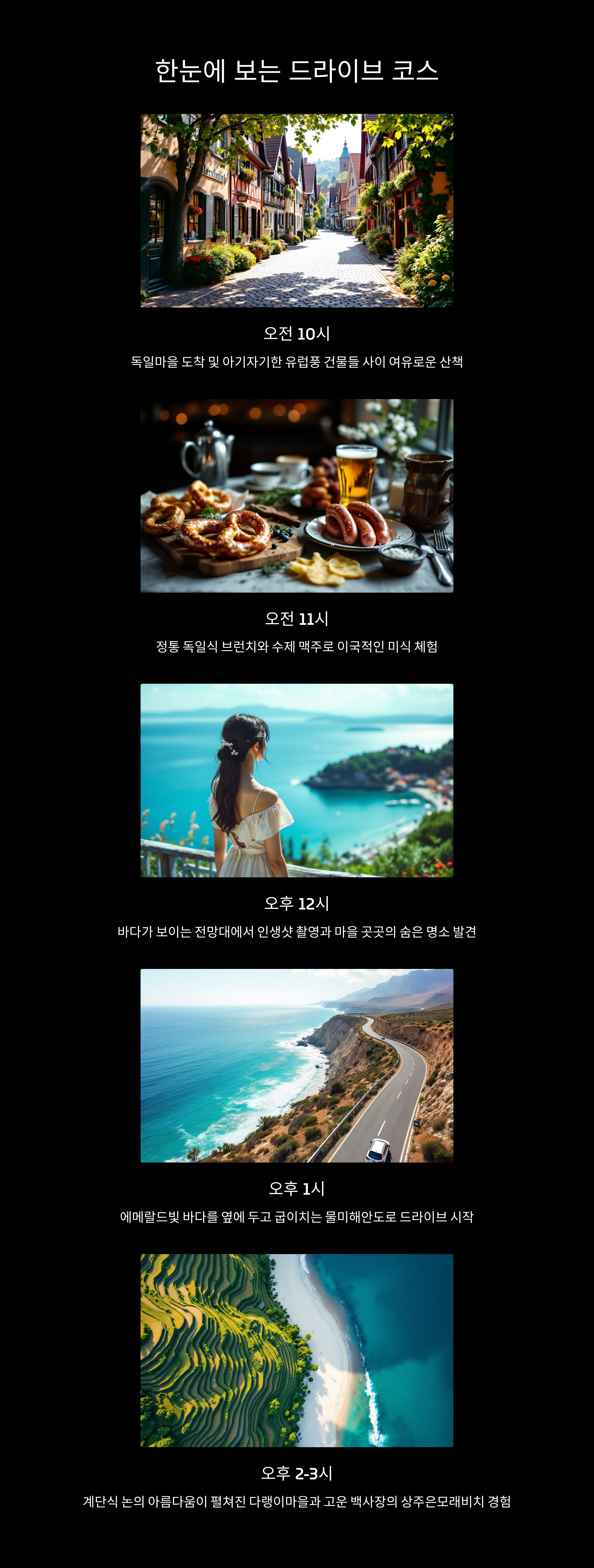 | 오전 10시 | 독일마을 도착 및 산책 | 경남 남해 독일마을 |