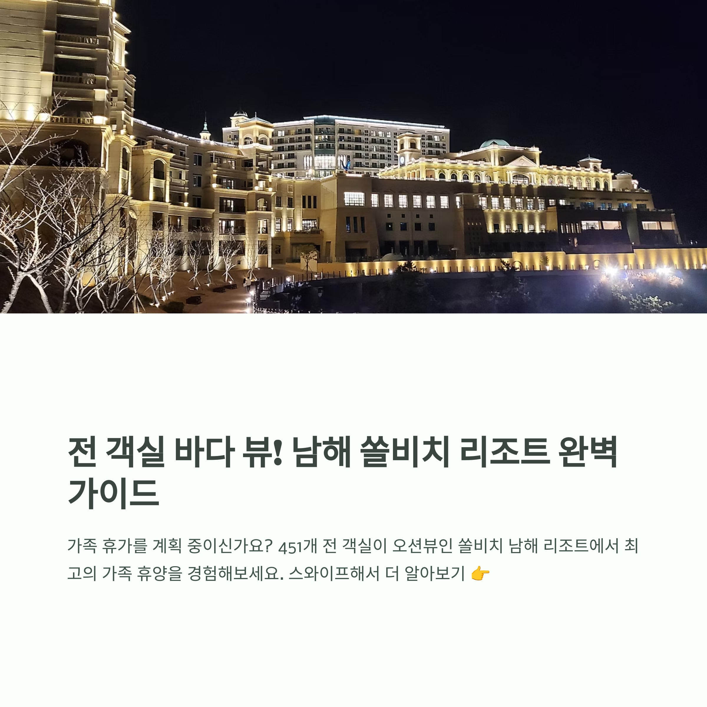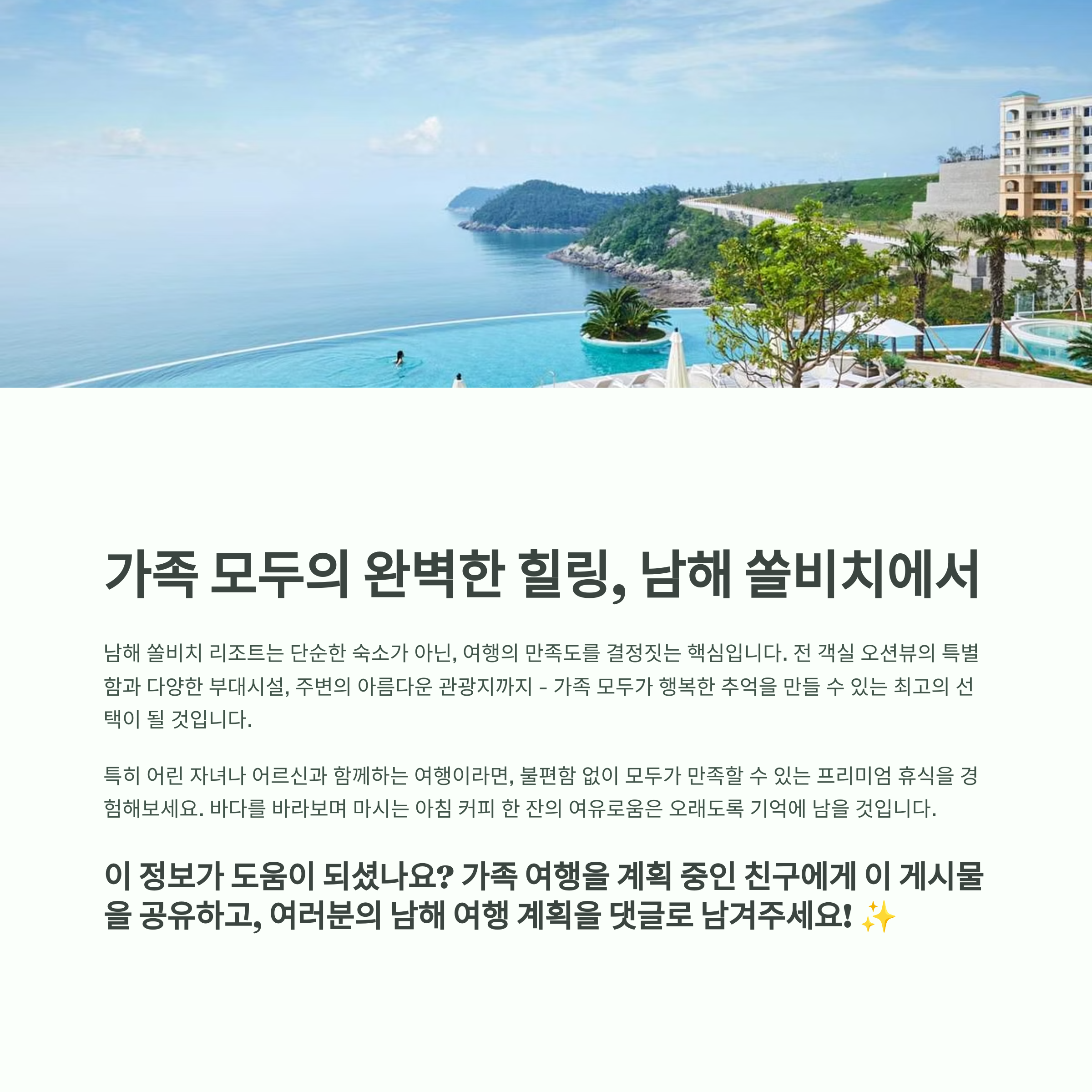 오늘은 쏠비치 남해의 상세한 숙소 정보부터 주변 명소, 이동 팁까지
