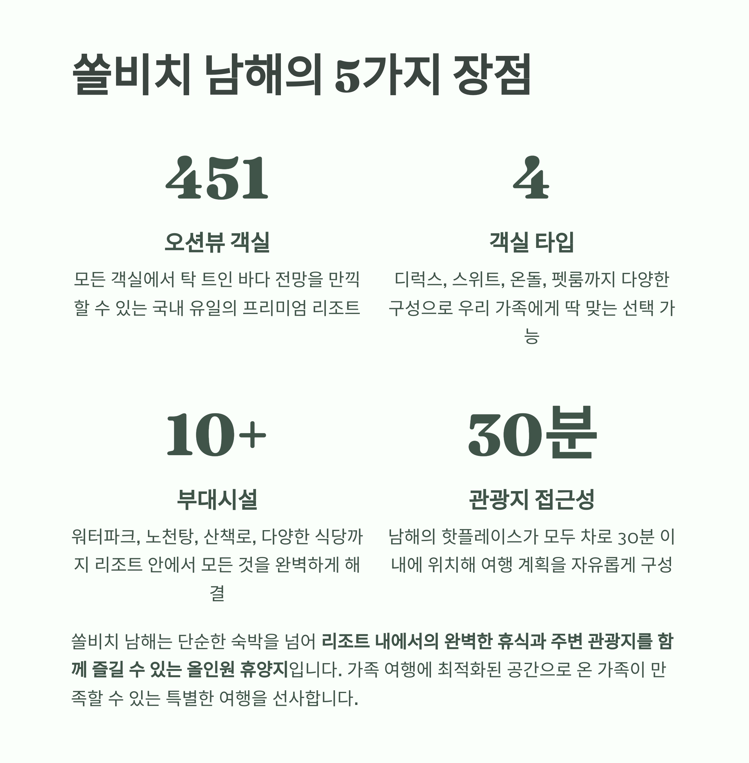 451개 전 객실 바다 전망, 근처 여행지까지 완벽한 남해 가족 휴양지