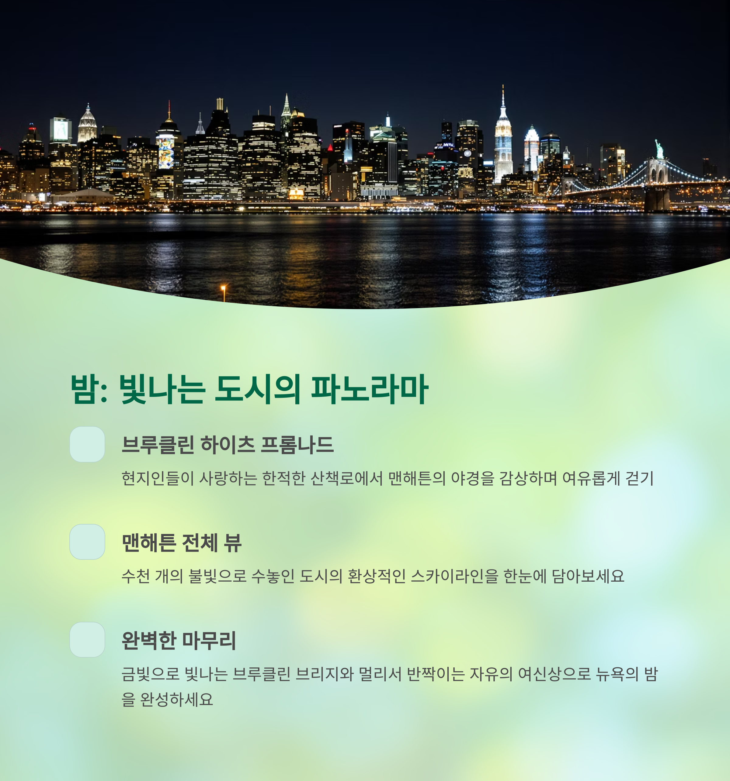 | 밤 | 브루클린 하이츠 프롬나드 | 야경 감상, 하루 정리 |