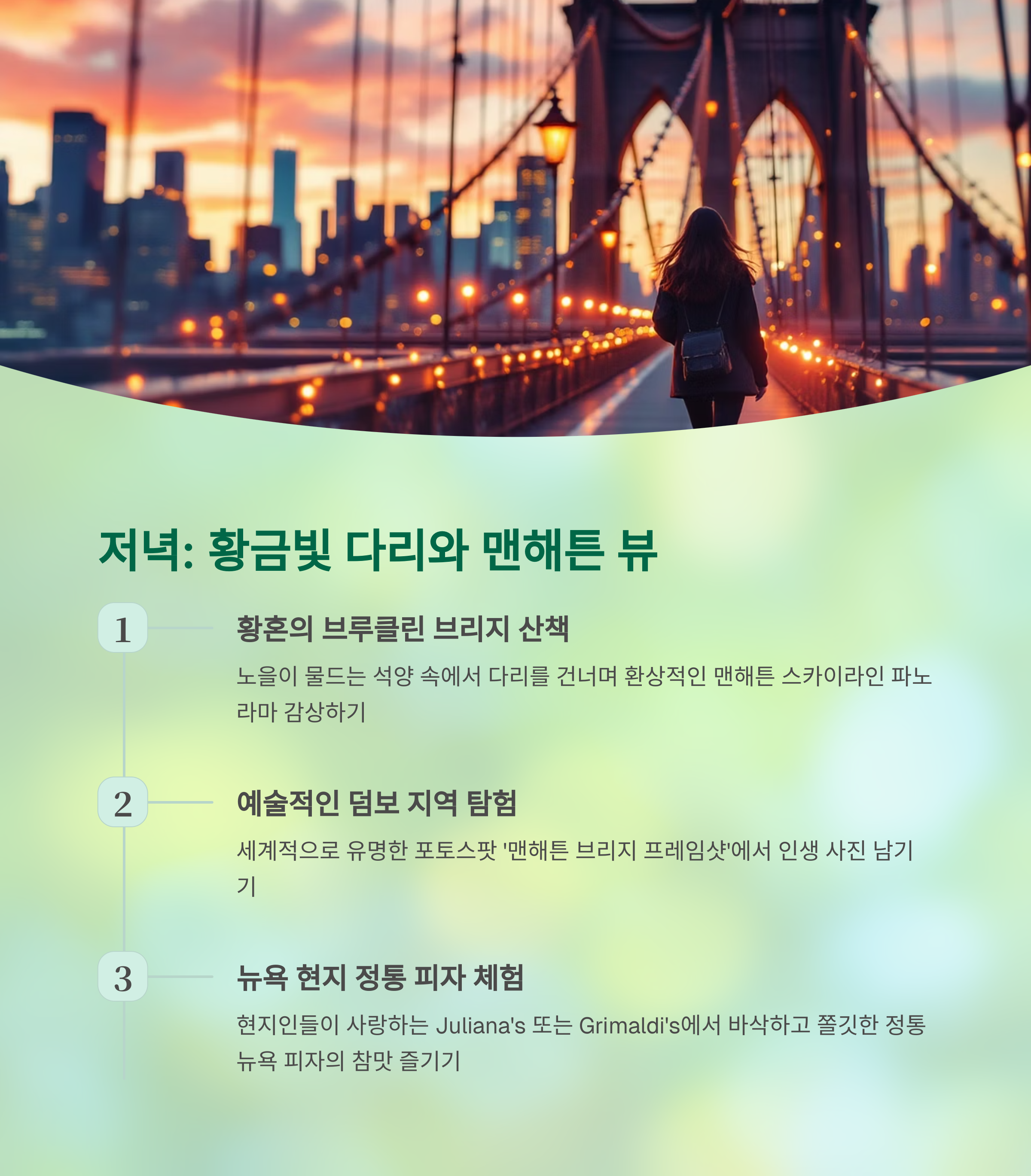 해가 질 무렵, **브루클린 브리지(Brooklyn Bridge)**로 이동해