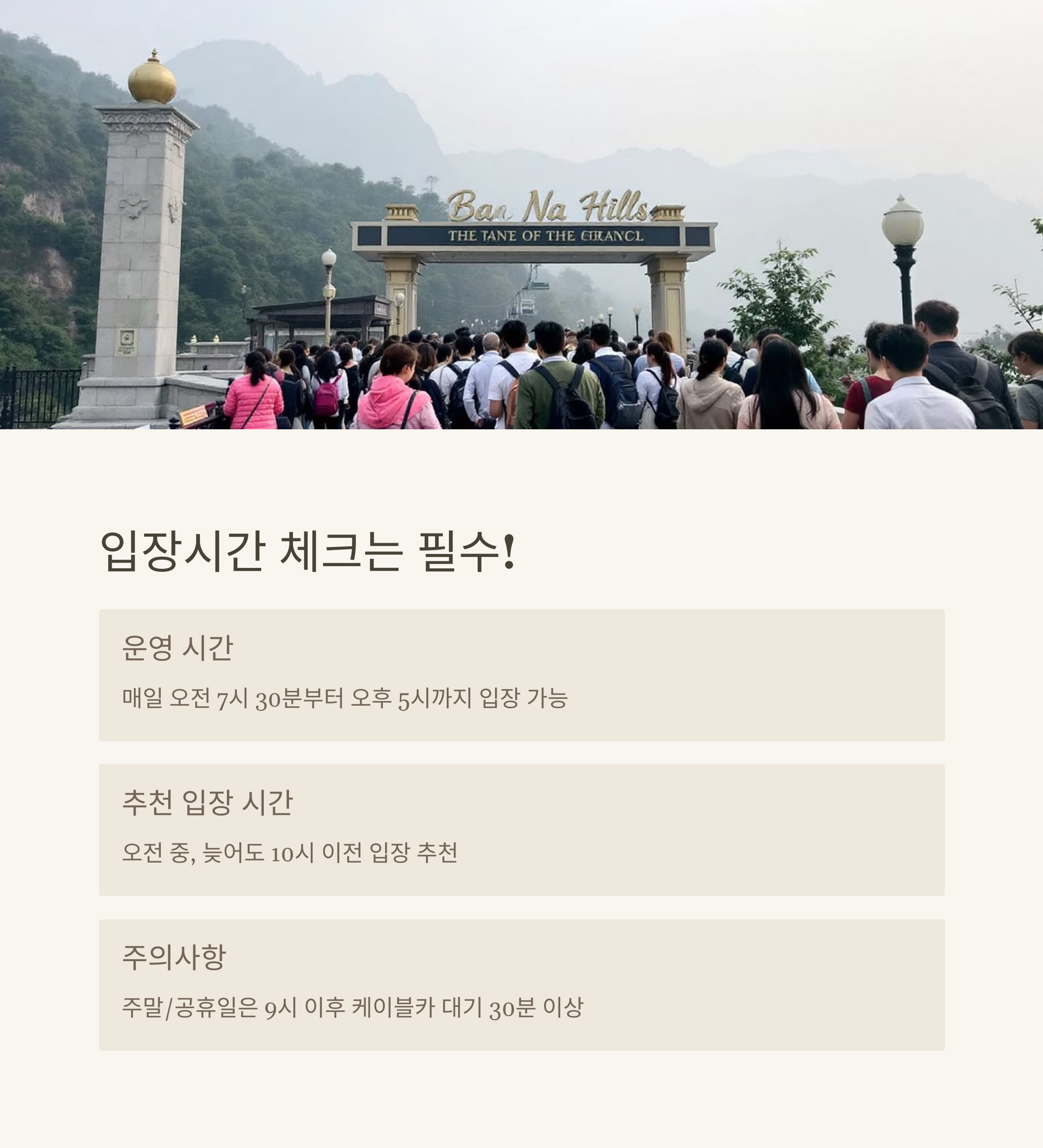 오늘은 바나힐을 하루 만에 알차게 즐길 수 있는 입장 시간, 케이블카 이용 꿀팁을 소개합니다.