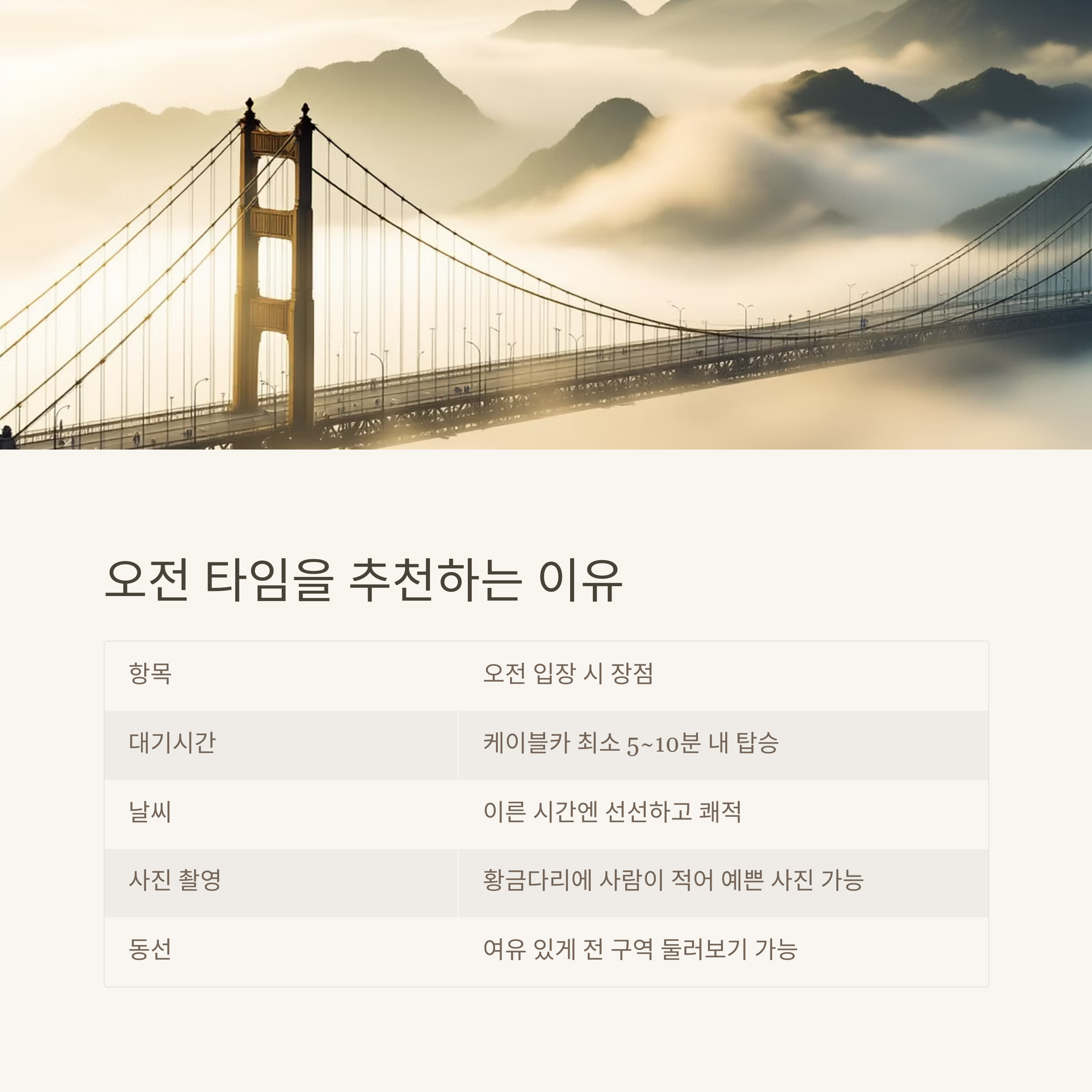 오전 9시 이후에는 케이블카 대기 줄이 30분 이상 걸릴 수 있어요.