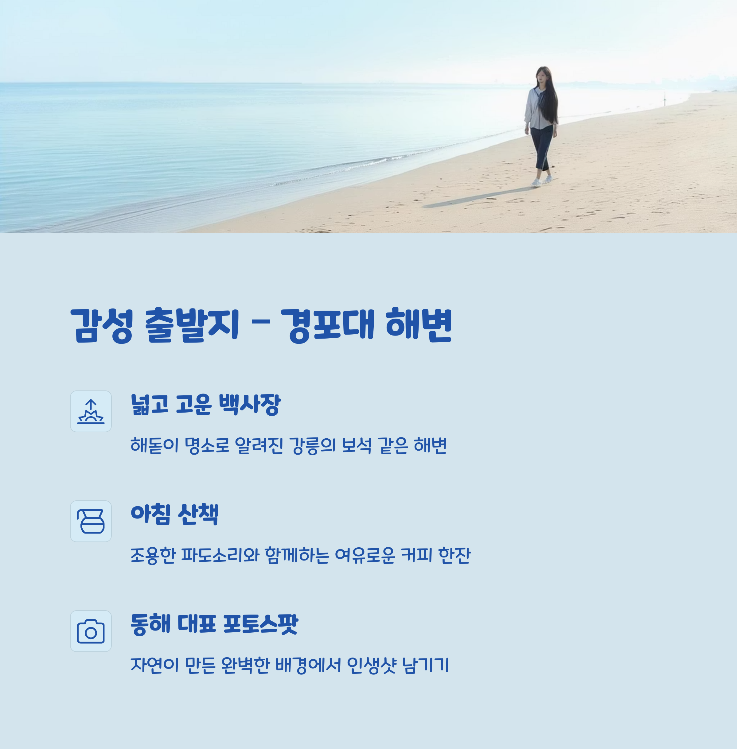 강릉 경포대 해변에서 여유롭게 시작하는 감성 여행
