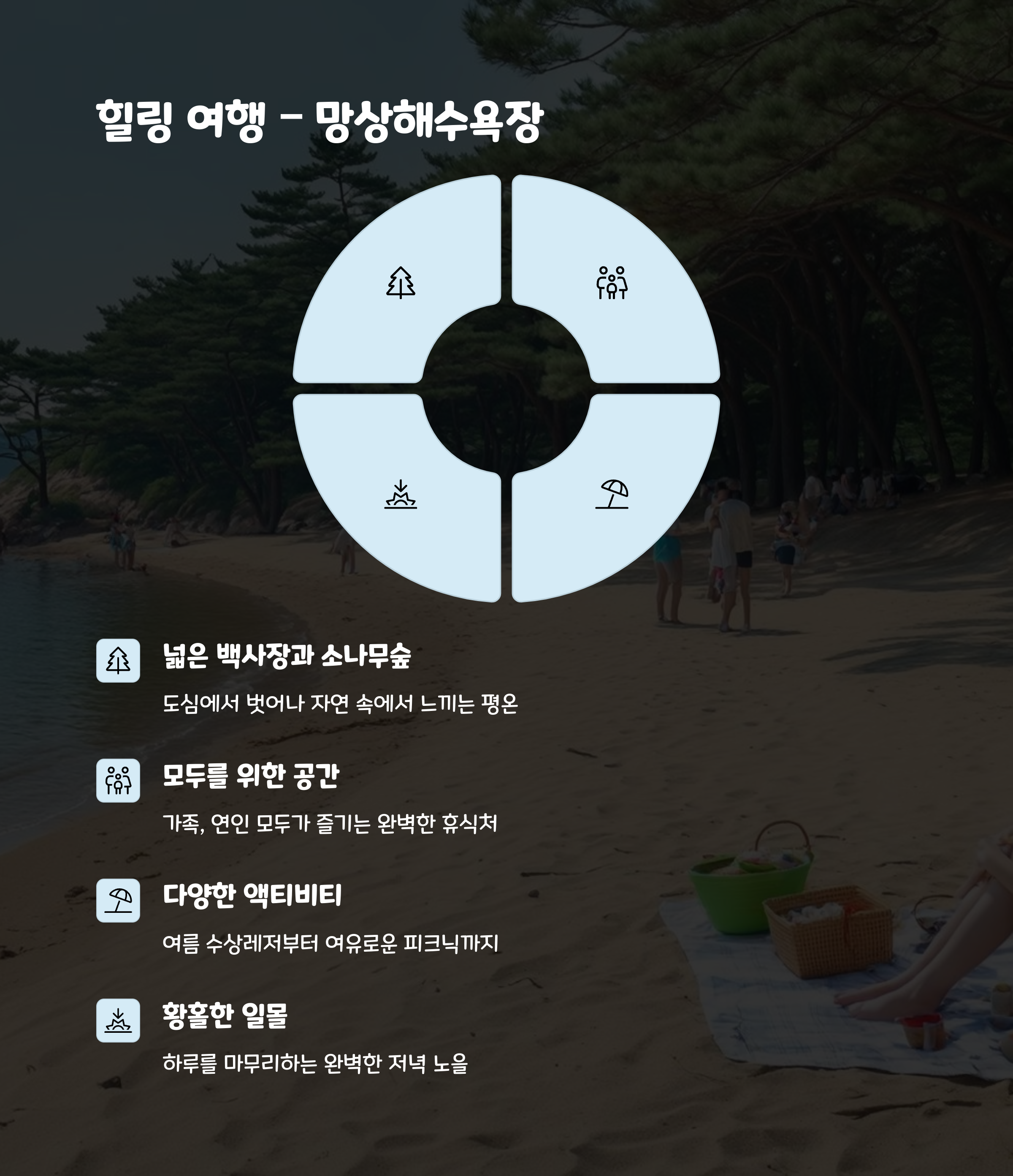 바닷바람을 맞으며 천천히 산책하거나 작은 조개껍질을 주워보는 소소한 재미도 있습니다.