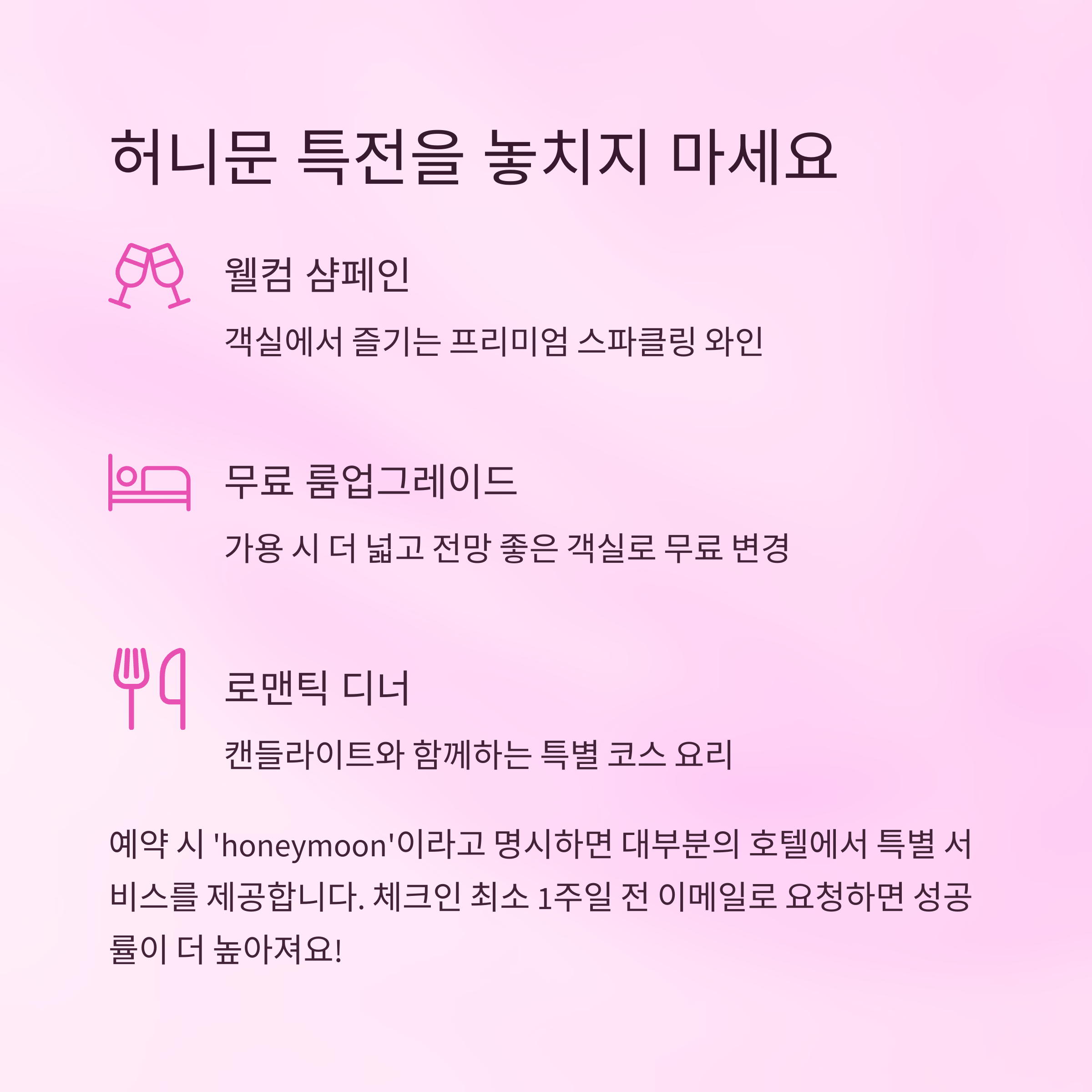 허니문 특전이 있는 숙소인지 꼭 확인하세요