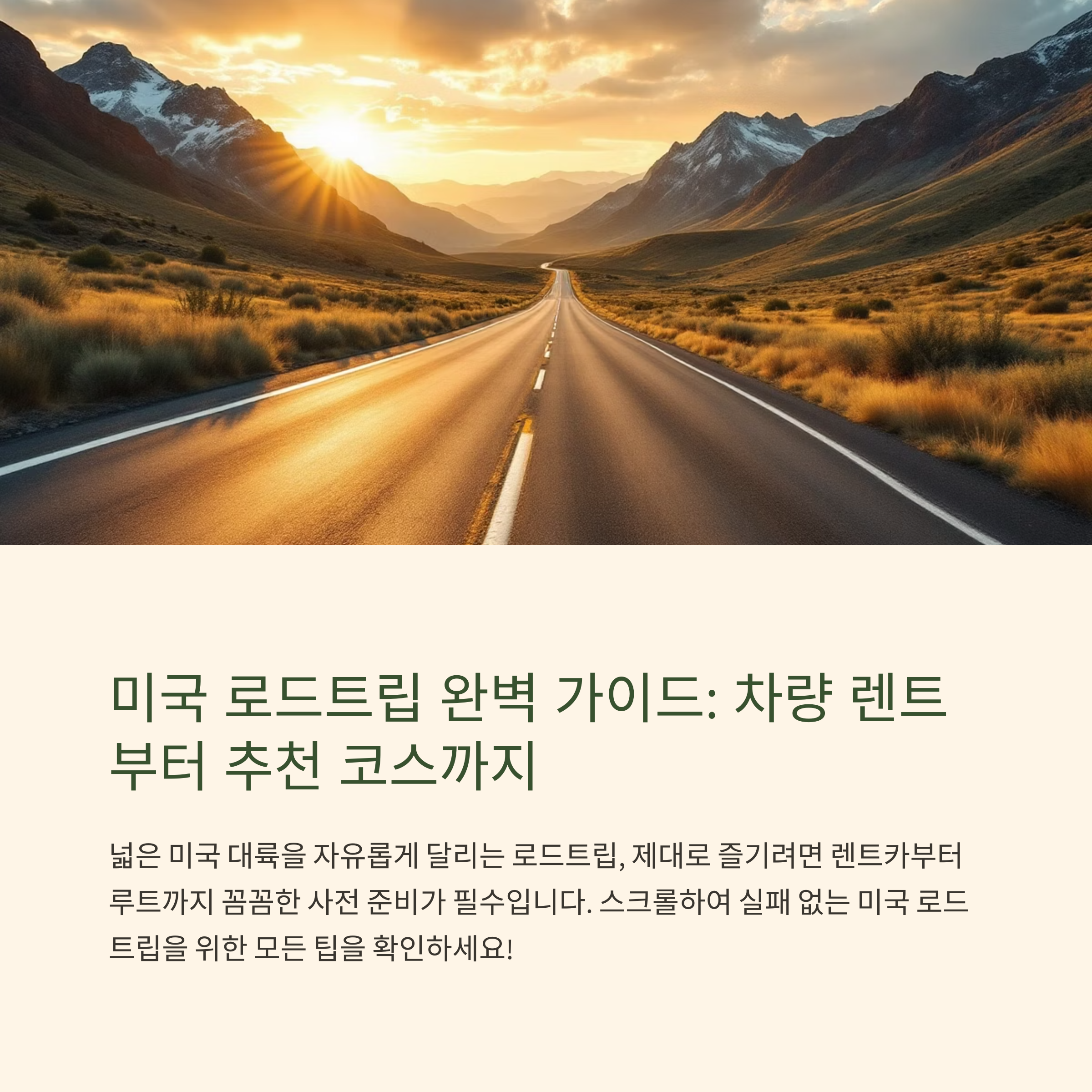 미국은 로드트립의 천국이라 불릴 만큼 광활하고 다양한 자연 경관을 자랑합니다
