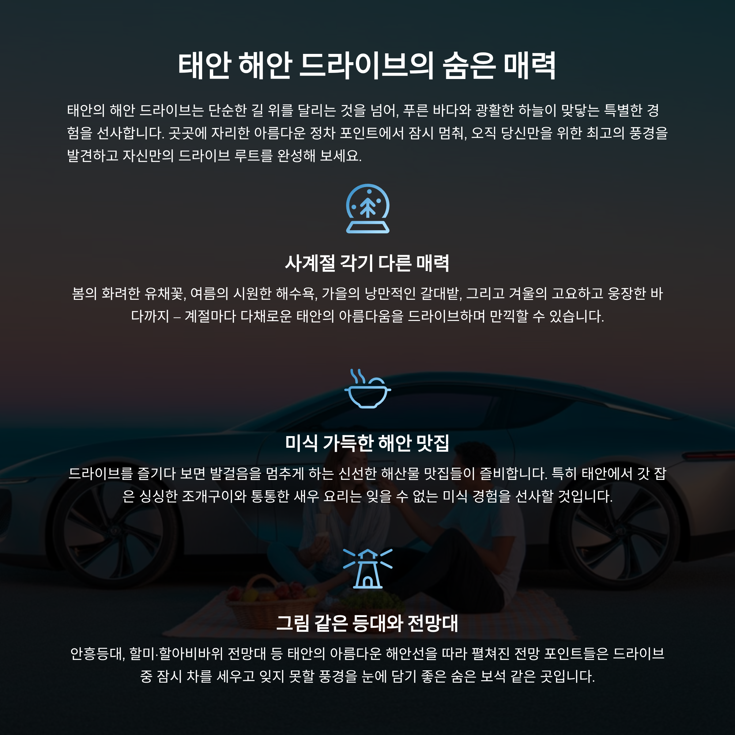 태안 드라이브를 완벽하게 안내해드릴게요.