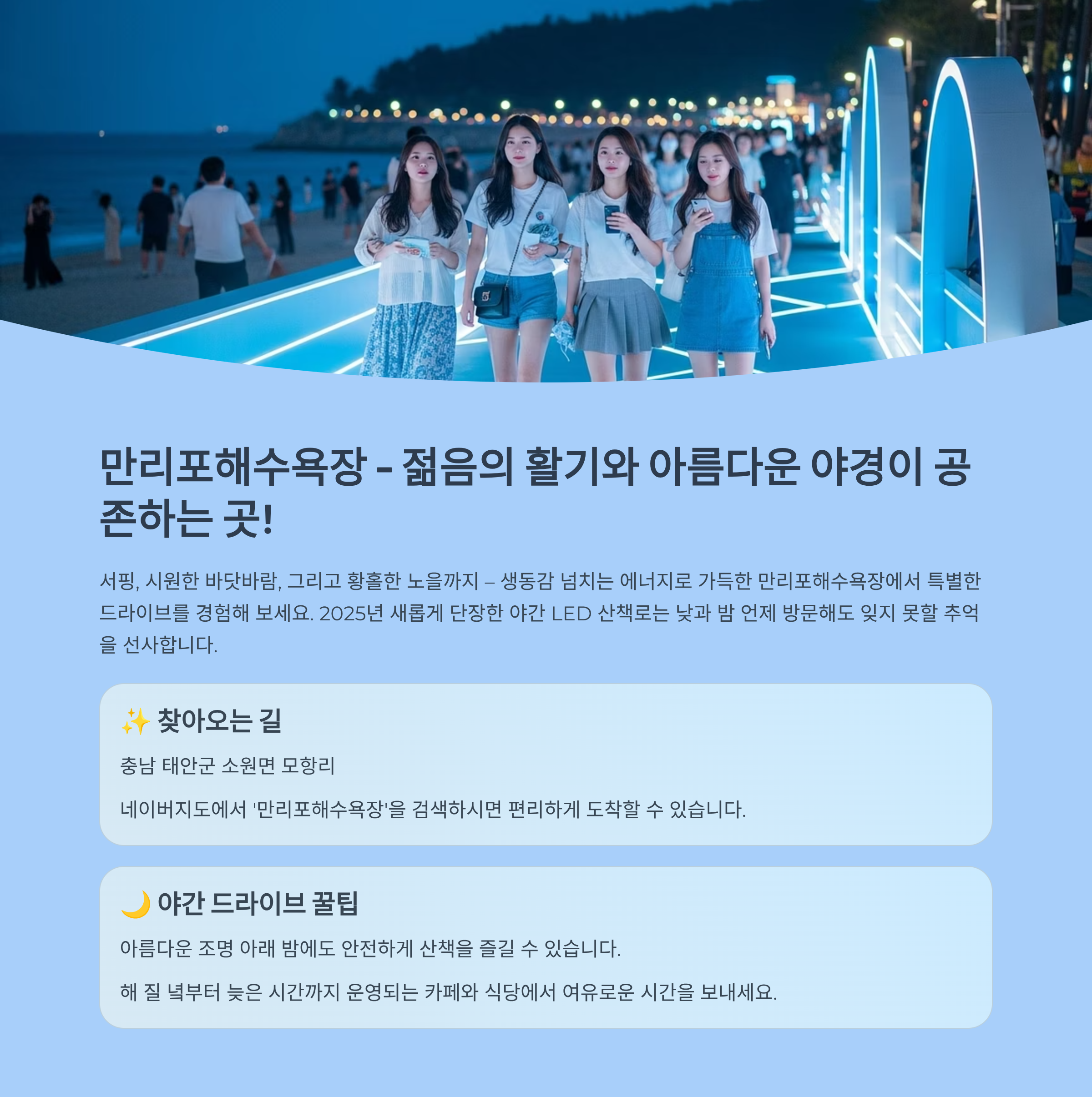 3. 만리포해수욕장 – 젊은 감성, 야경까지 완벽