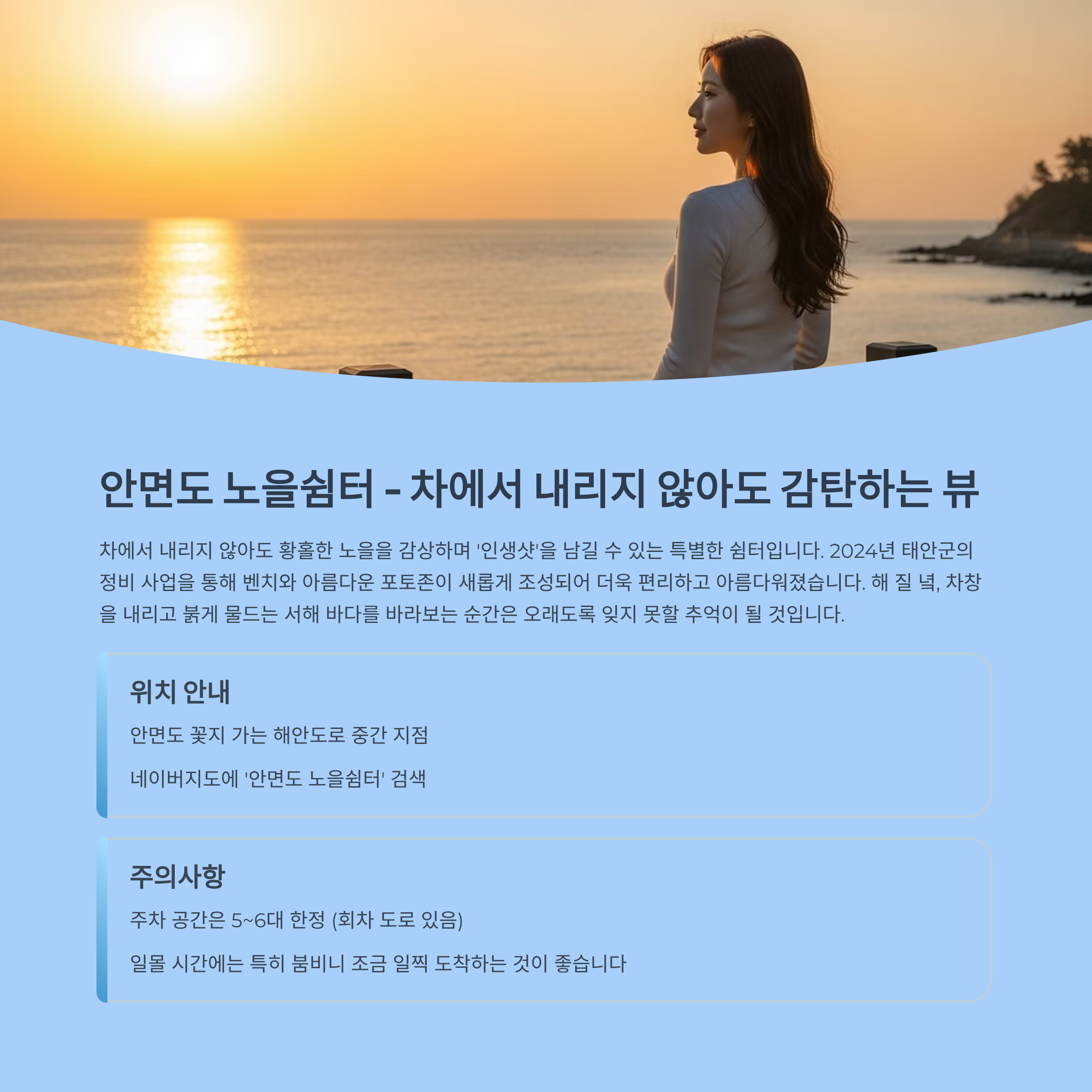 | 안면도 노을쉼터 단독 정차 | 인생샷, 정차뷰, 노을 감상 포인트 |