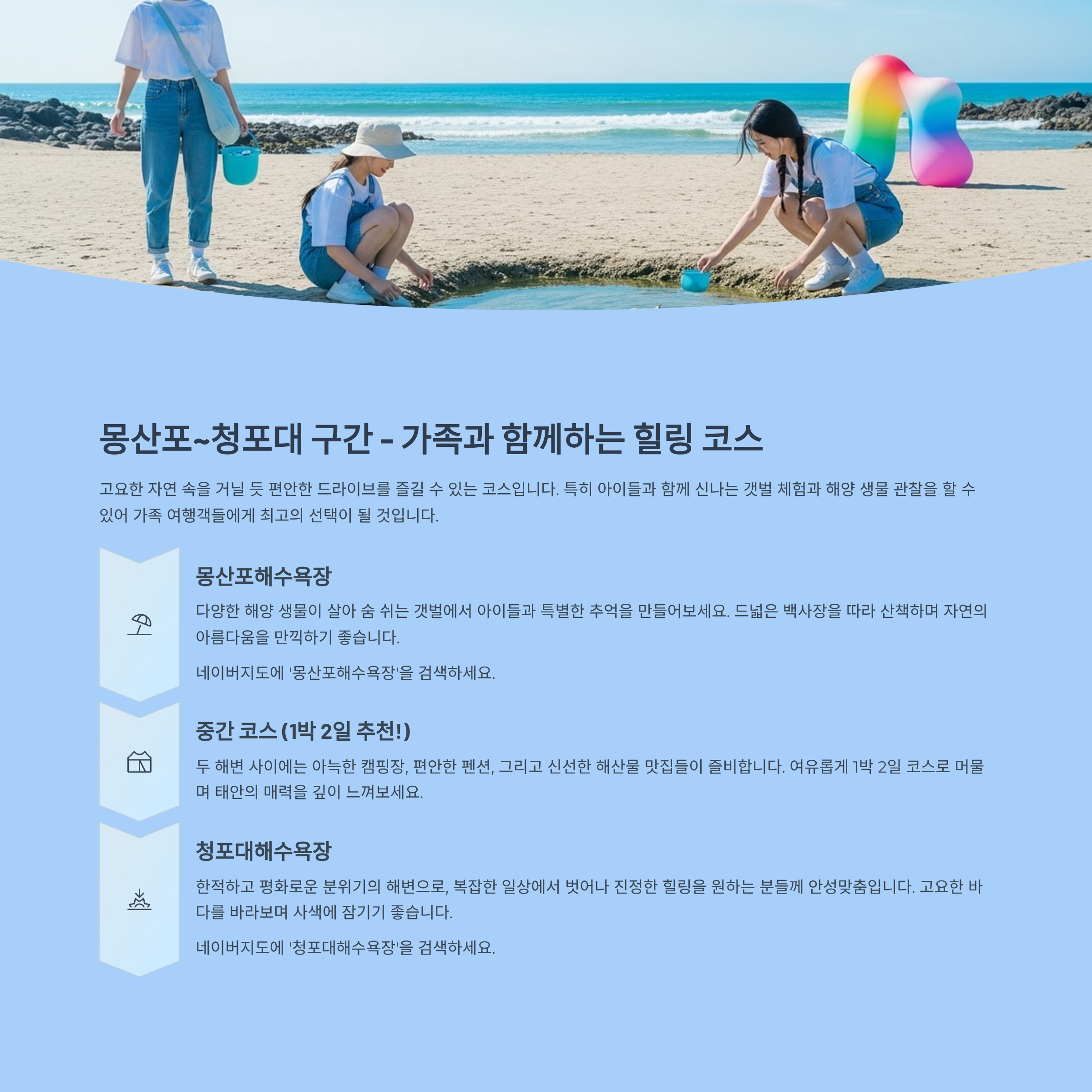 - 팁: 청포대는 한적하고 조용한 분위기, 몽산포는 체험형 해변