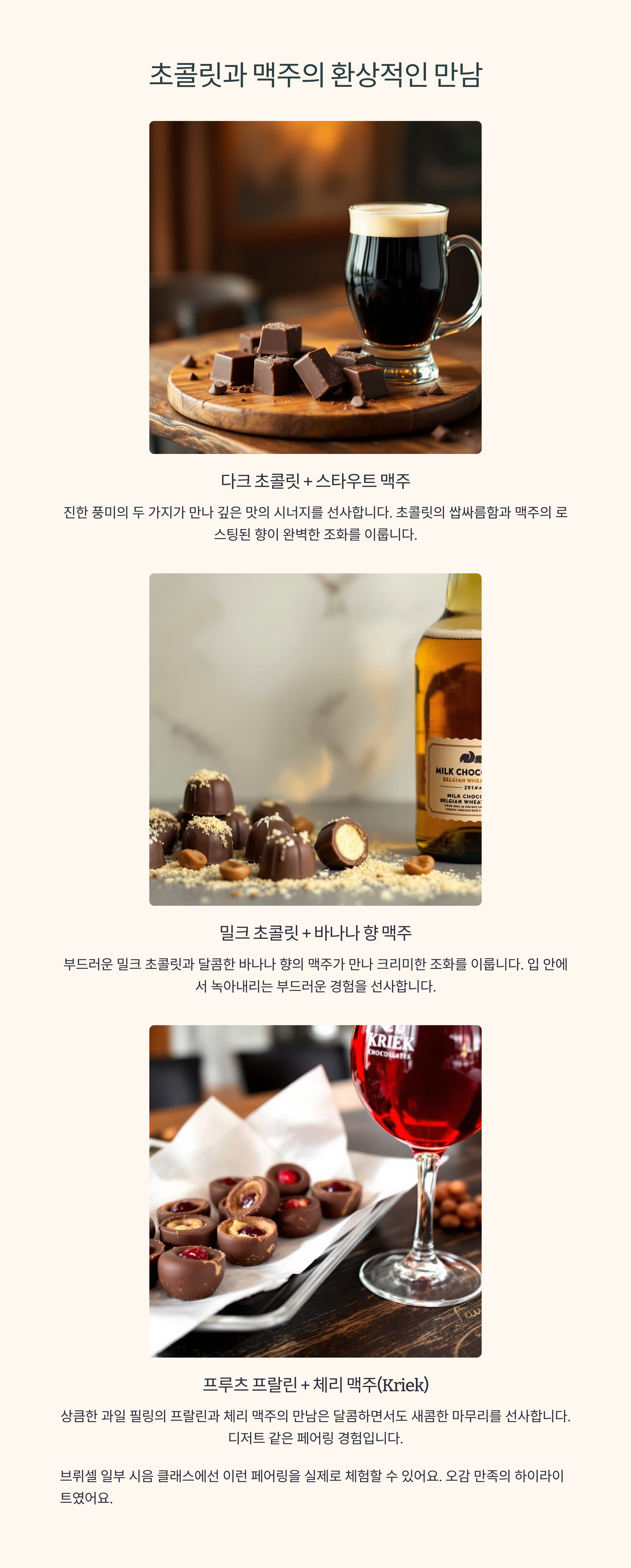 - 프루츠 프랄린 + 체리 맥주(Kriek): 상큼하고 달달한 마무리