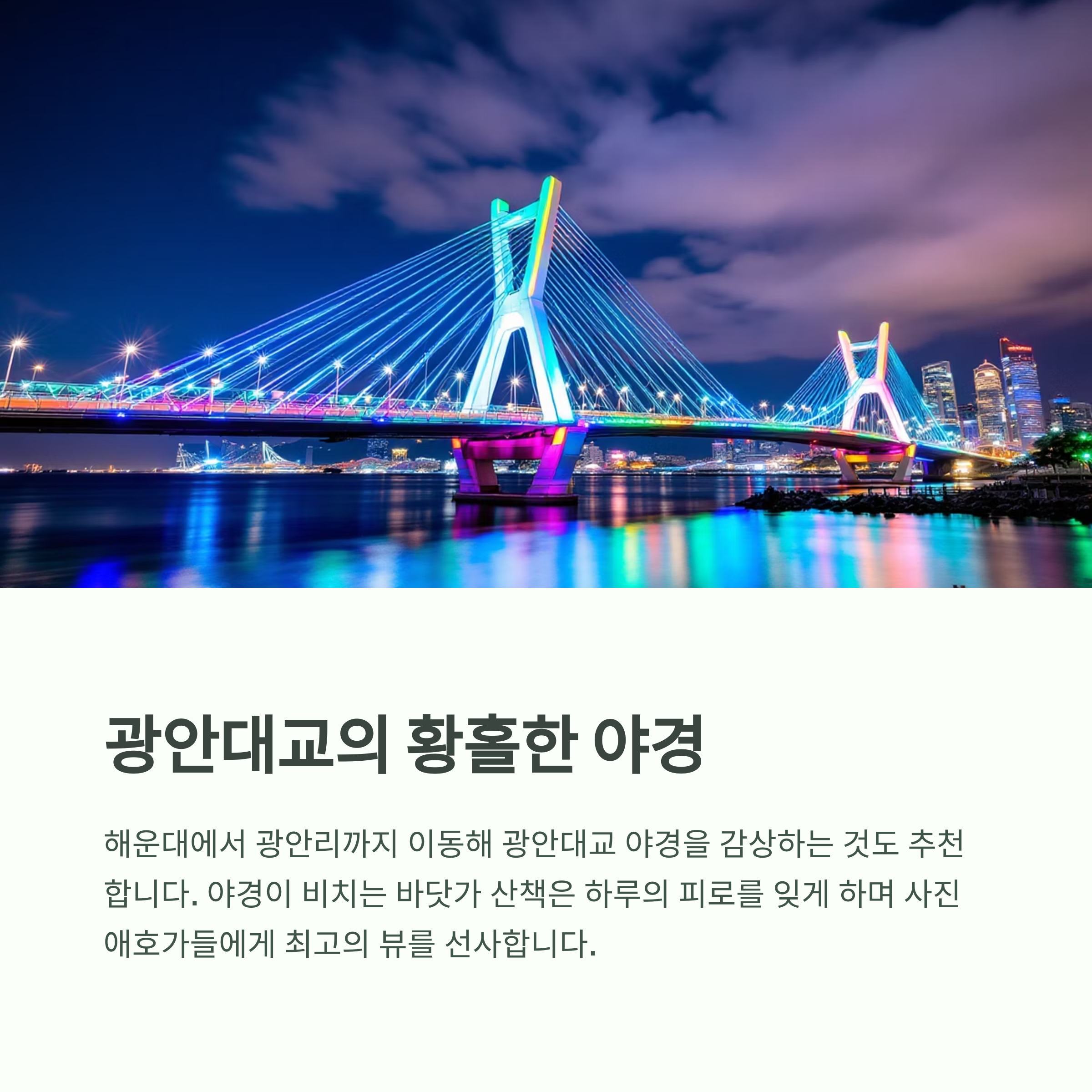 오후엔 바다 보며 커피 한 잔, 밤엔 광안대교 야경까지 마무리하세요"