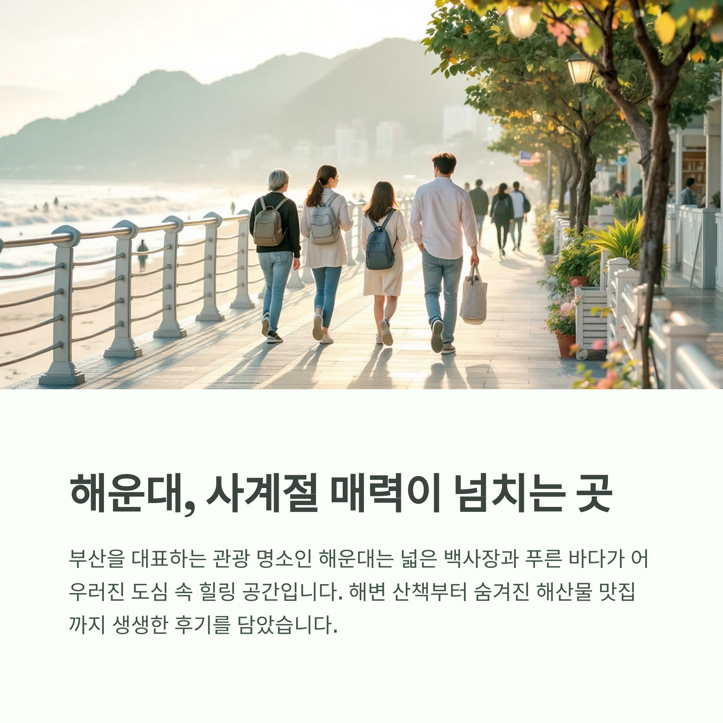 해운대는 단순한 해변을 넘어 감성과 힐링, 미식이 공존하는 여행지입니다