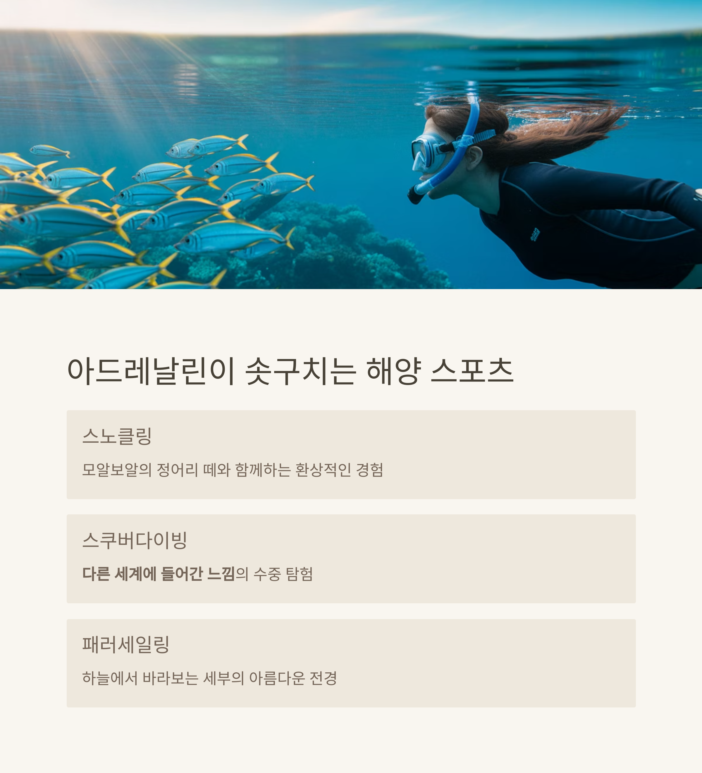 "바닷속 산호와 물고기를 눈앞에서 본 순간,