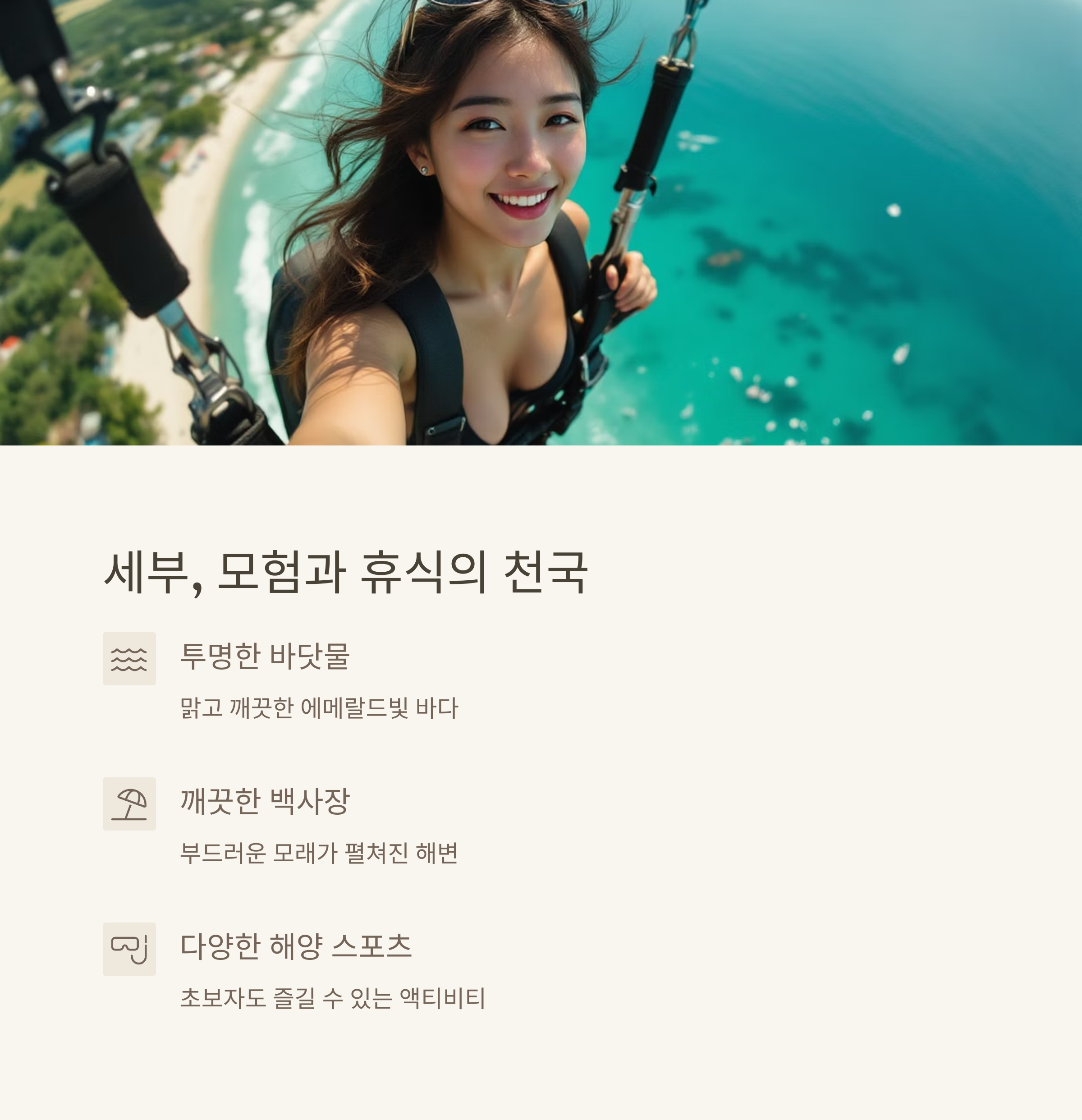 "이 일정 하나면 세부의 액티비티와 힐링을 모두 완성할 수 있습니다"