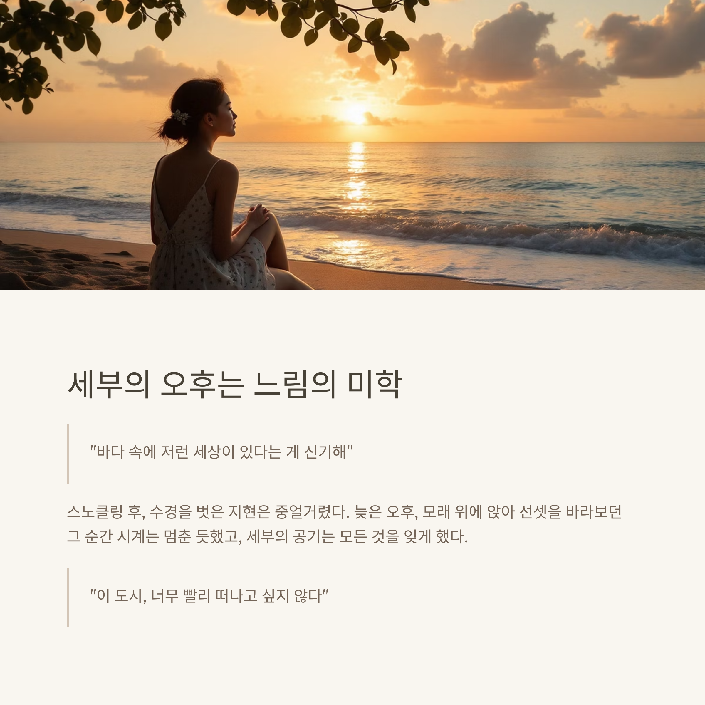 시계는 멈춘 듯했고, 세부의 공기는 모든 것을 잊게 했다