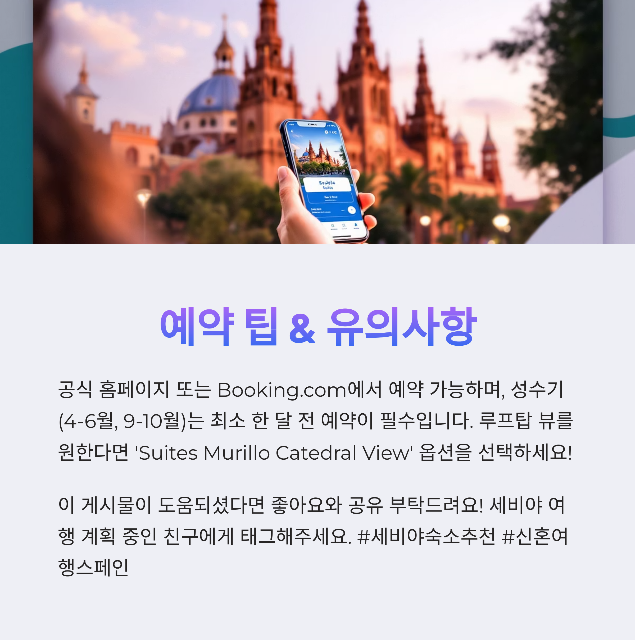 - 룸타입 다양: 루프탑 뷰 객실은 ‘Suites Murillo Catedral View’ 선택