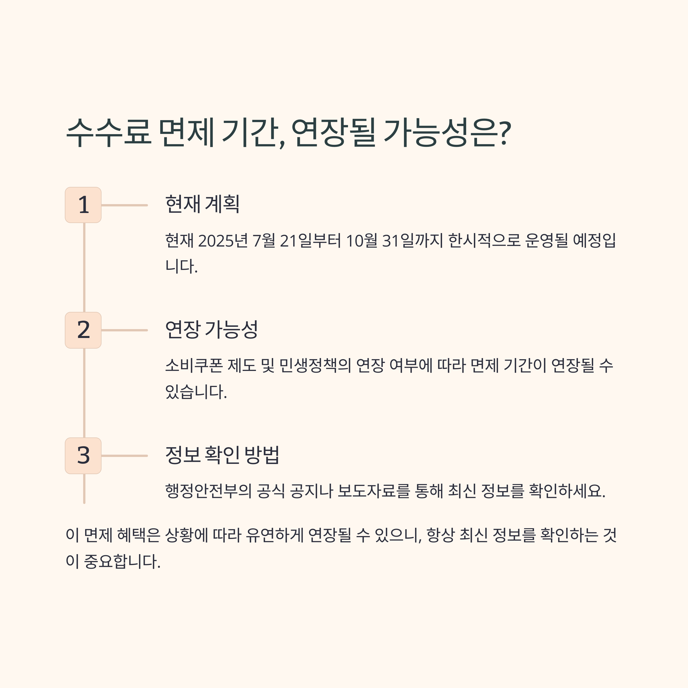 수수료 면제 기간은 2025년 7월 21일부터 10월 31일까지예요.