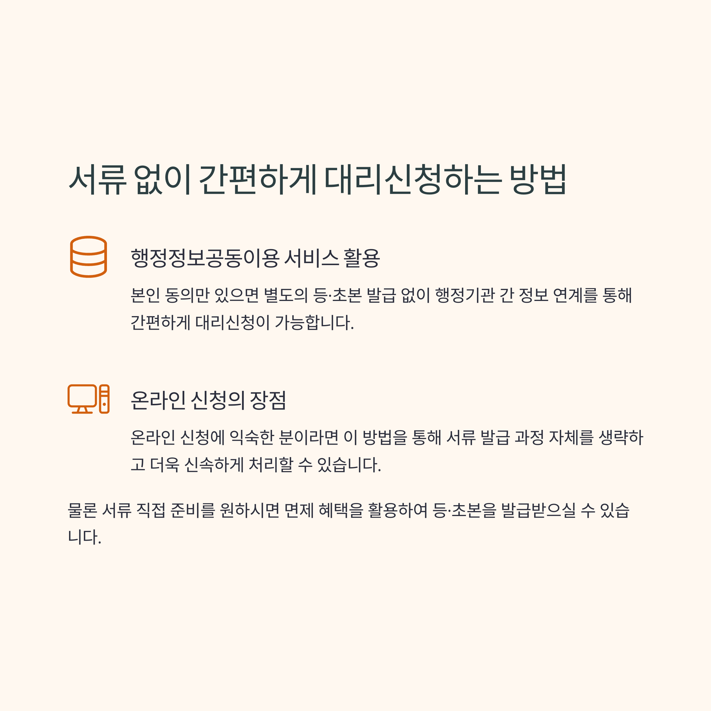 이는 대리신청 시 필수로 요구되는 가족관계 증명서류 부담을 덜어주기 위함이에요.