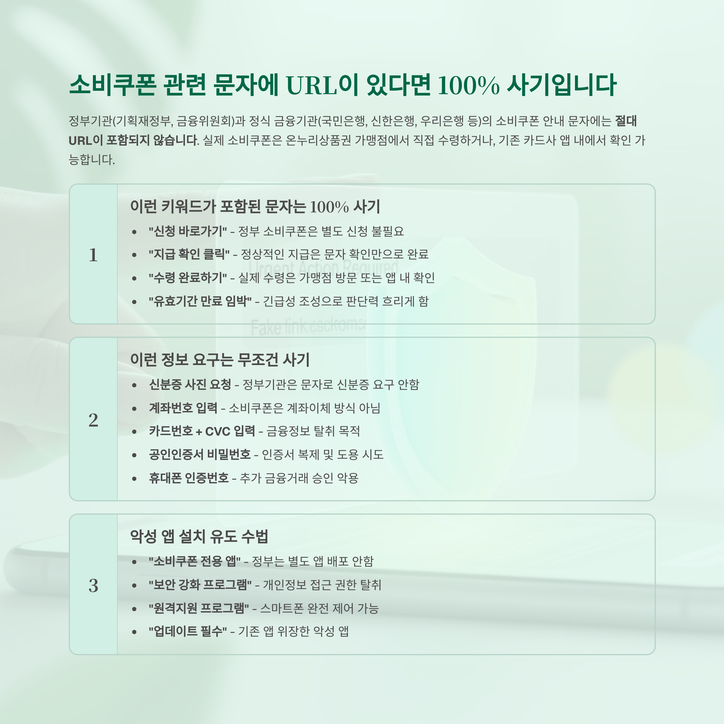 ‘소비쿠폰 신청 안내’ 문자 속 링크, 절대 클릭하지 마세요
