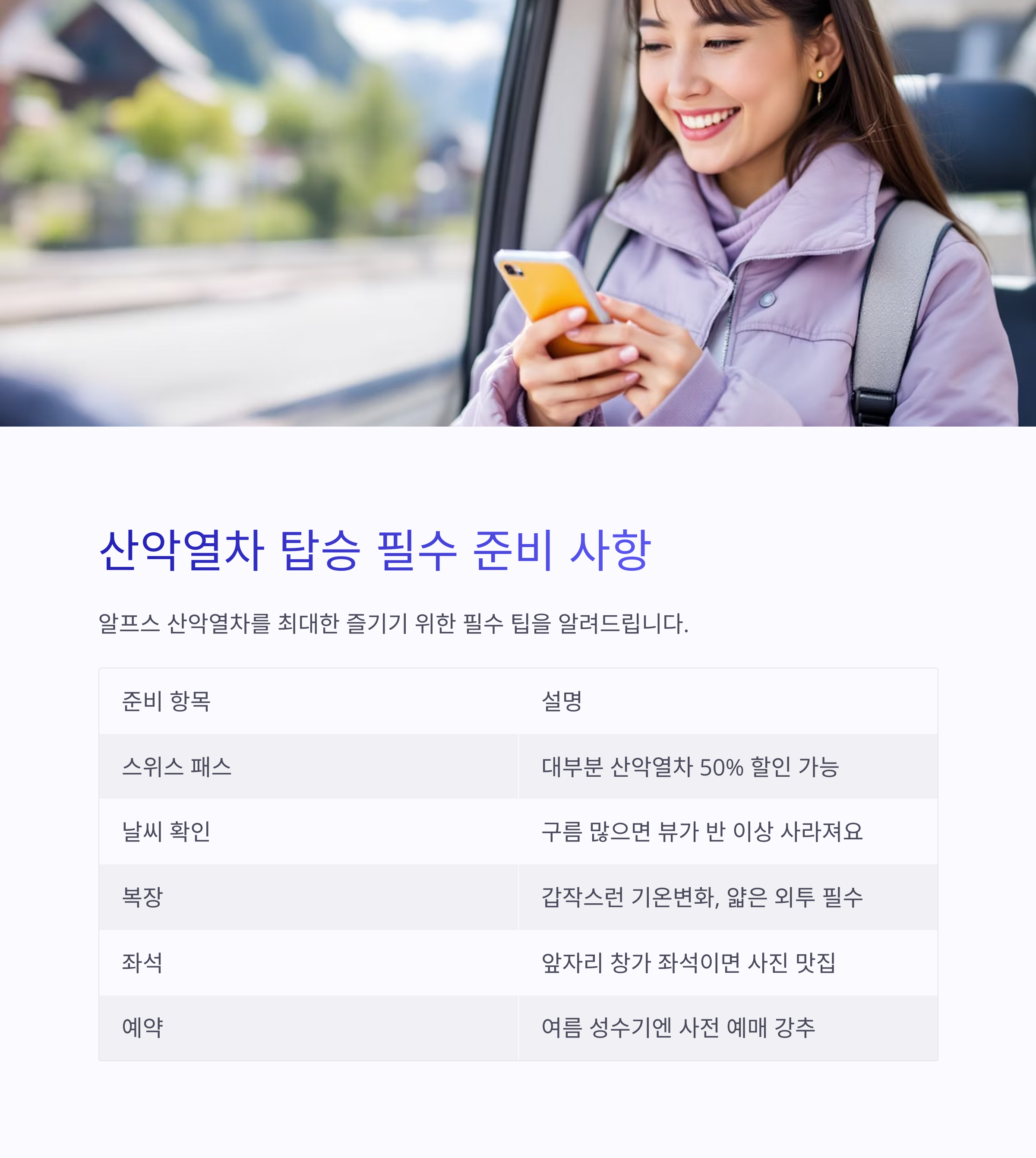 | 스위스 패스 | 대부분 산악열차 50% 할인 가능 |