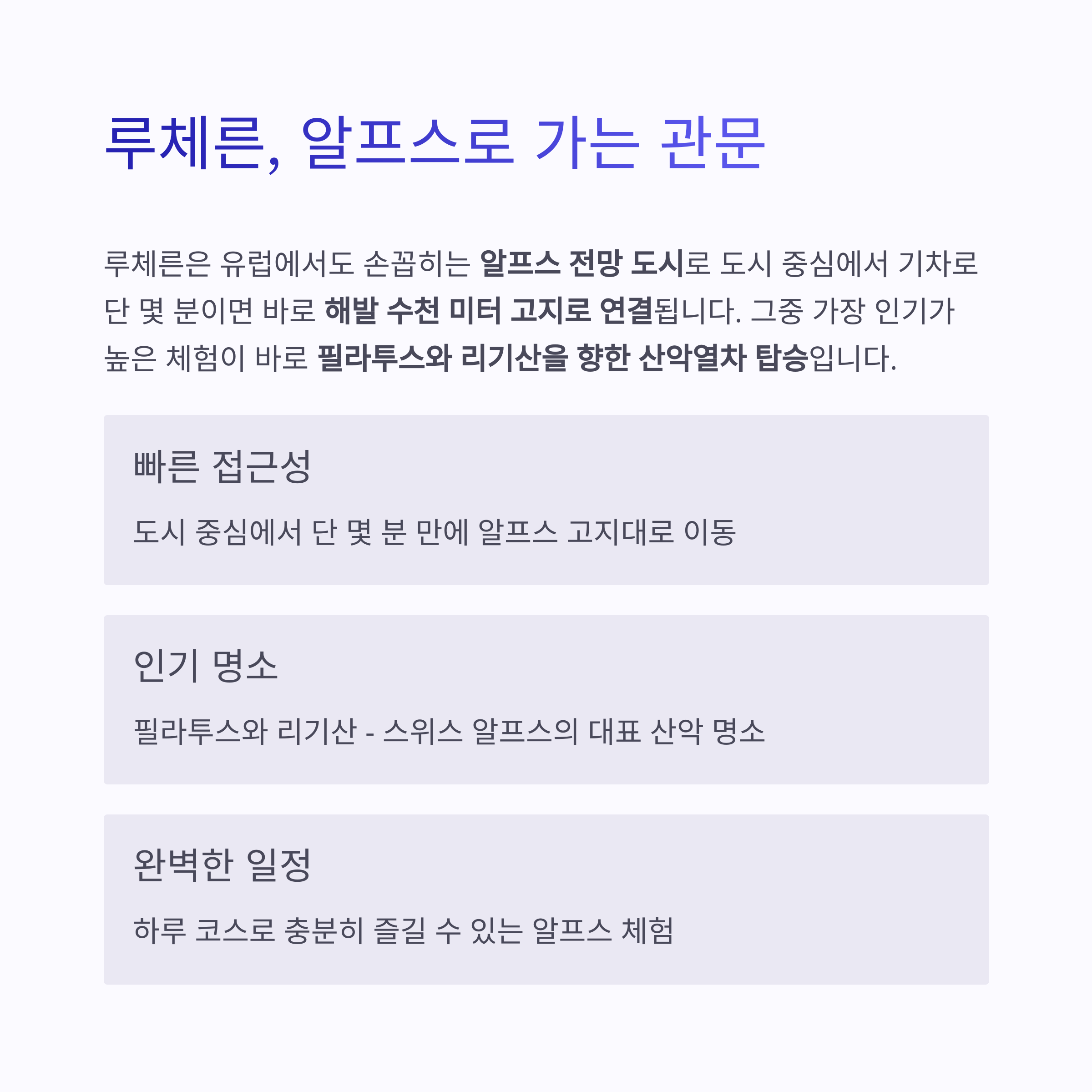 - 하루 일정으로도 충분히 루체른의 산을 느낄 수 있는 최고의 방법