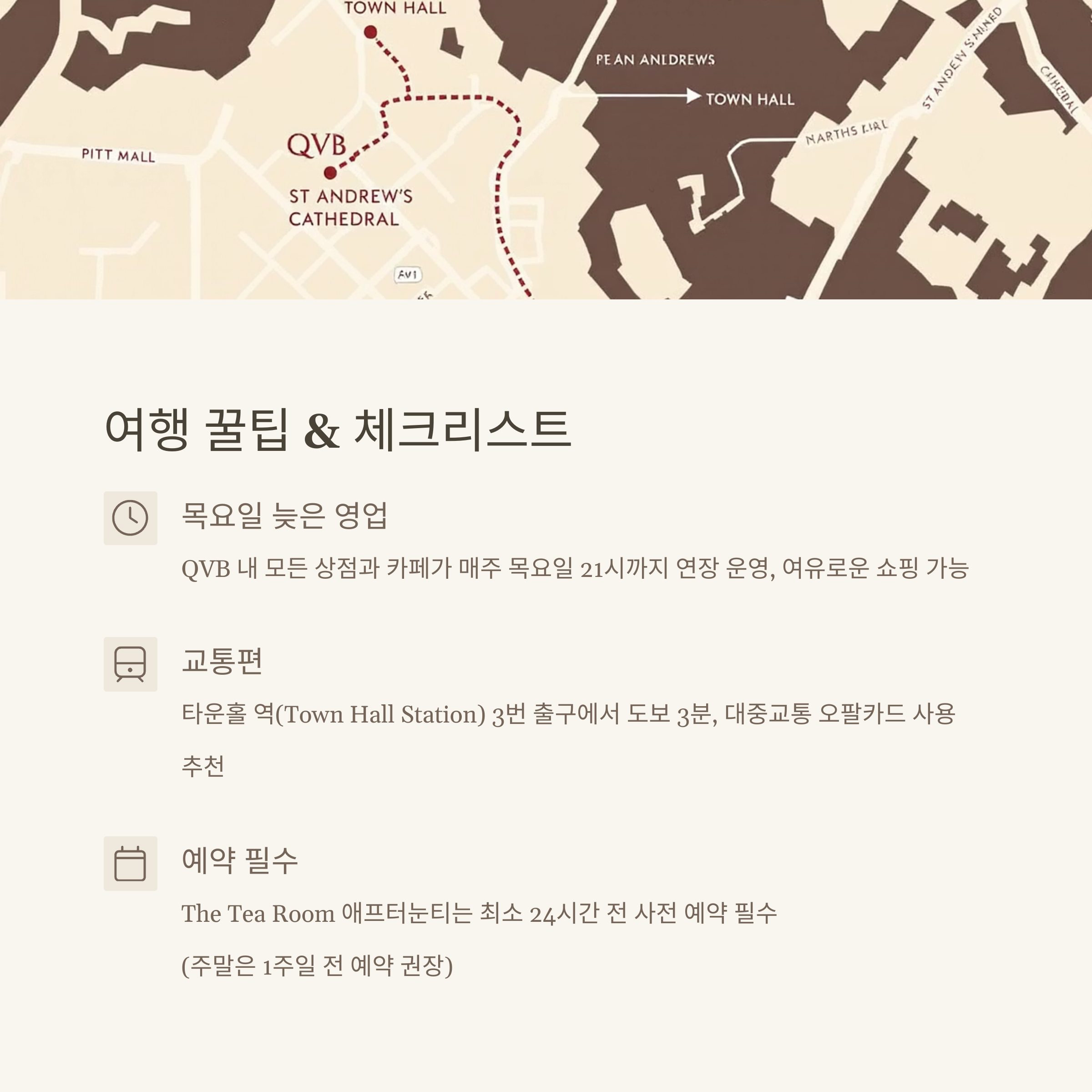 - 목요일은 늦은 영업: QVB 내 숍·카페가 21시까지 운영