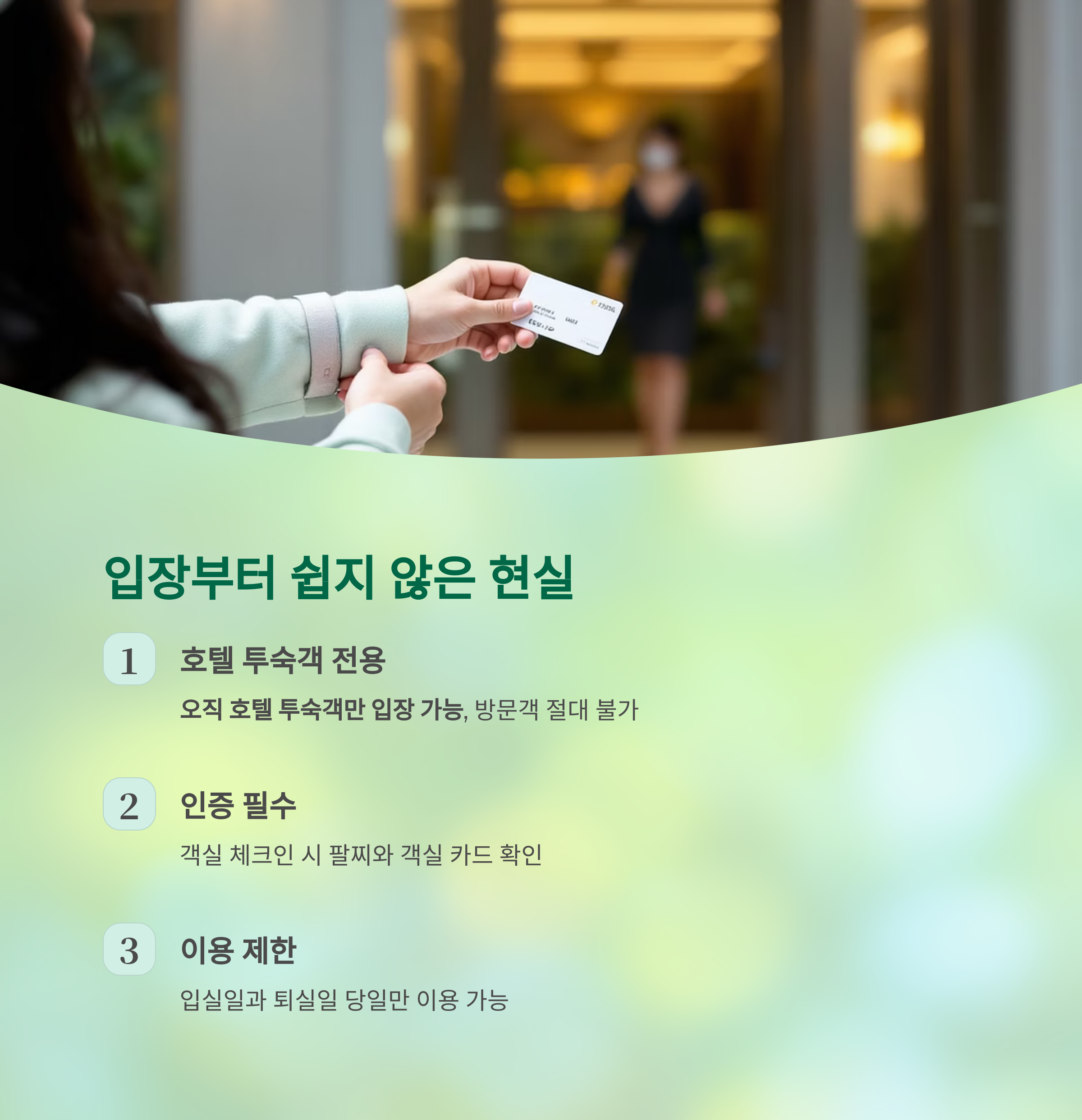 ① 숙박객 전용, 입장만으로도 쉽지 않다