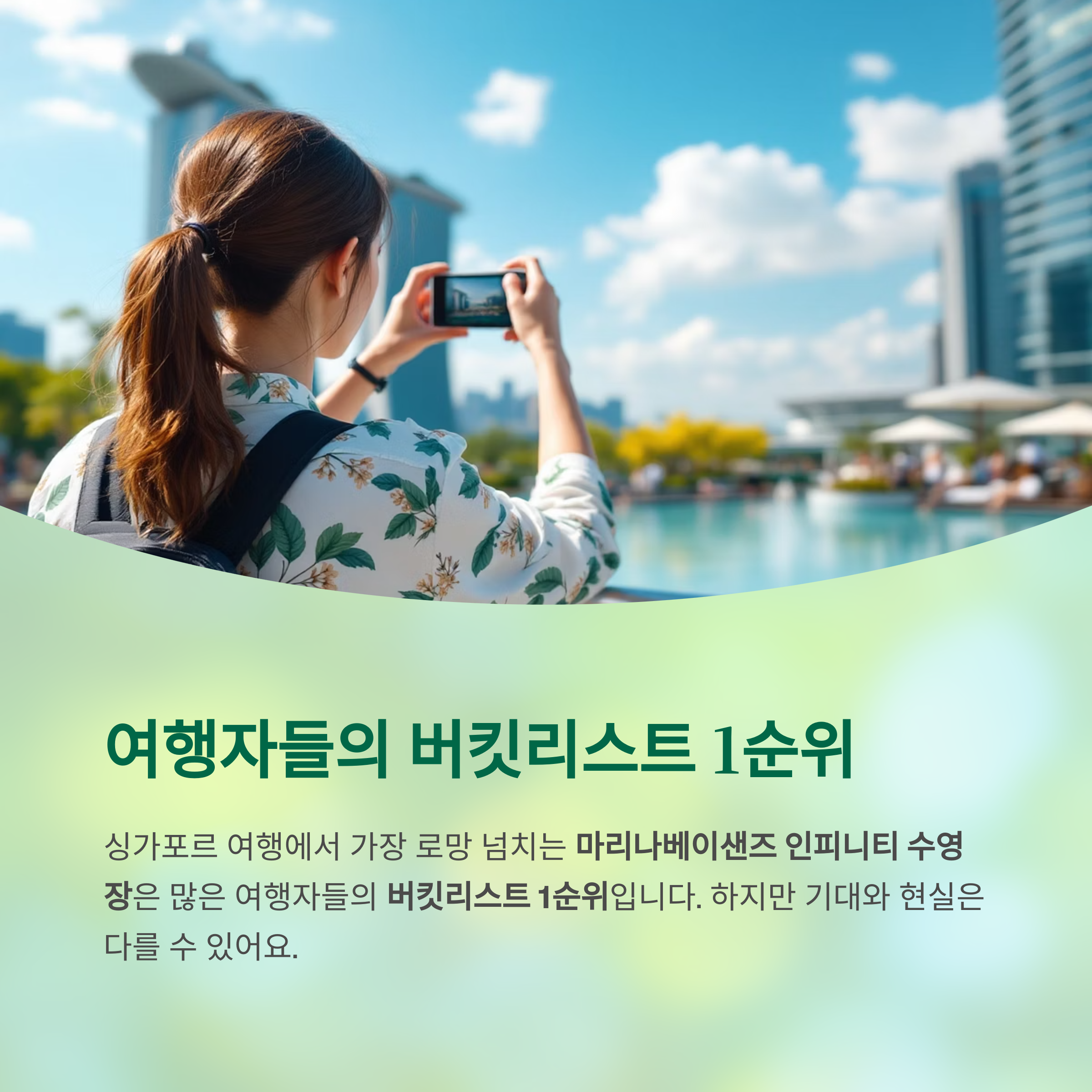 "마리나베이샌즈 수영장은, 눈으로는 감동, 몸으로는 약간 피곤함."