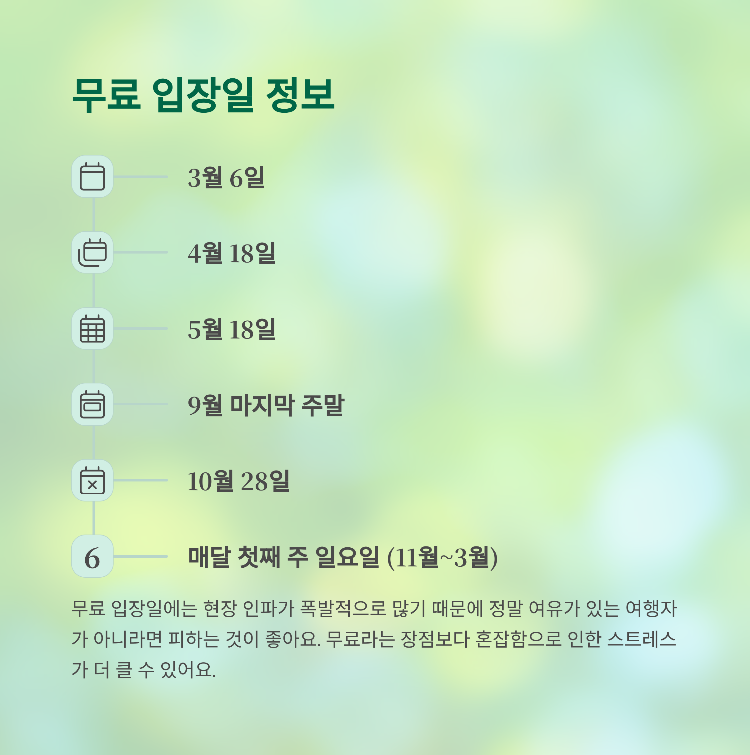 [입장 시간대 추천] 아침 8시 전 or 오후 5시 이후