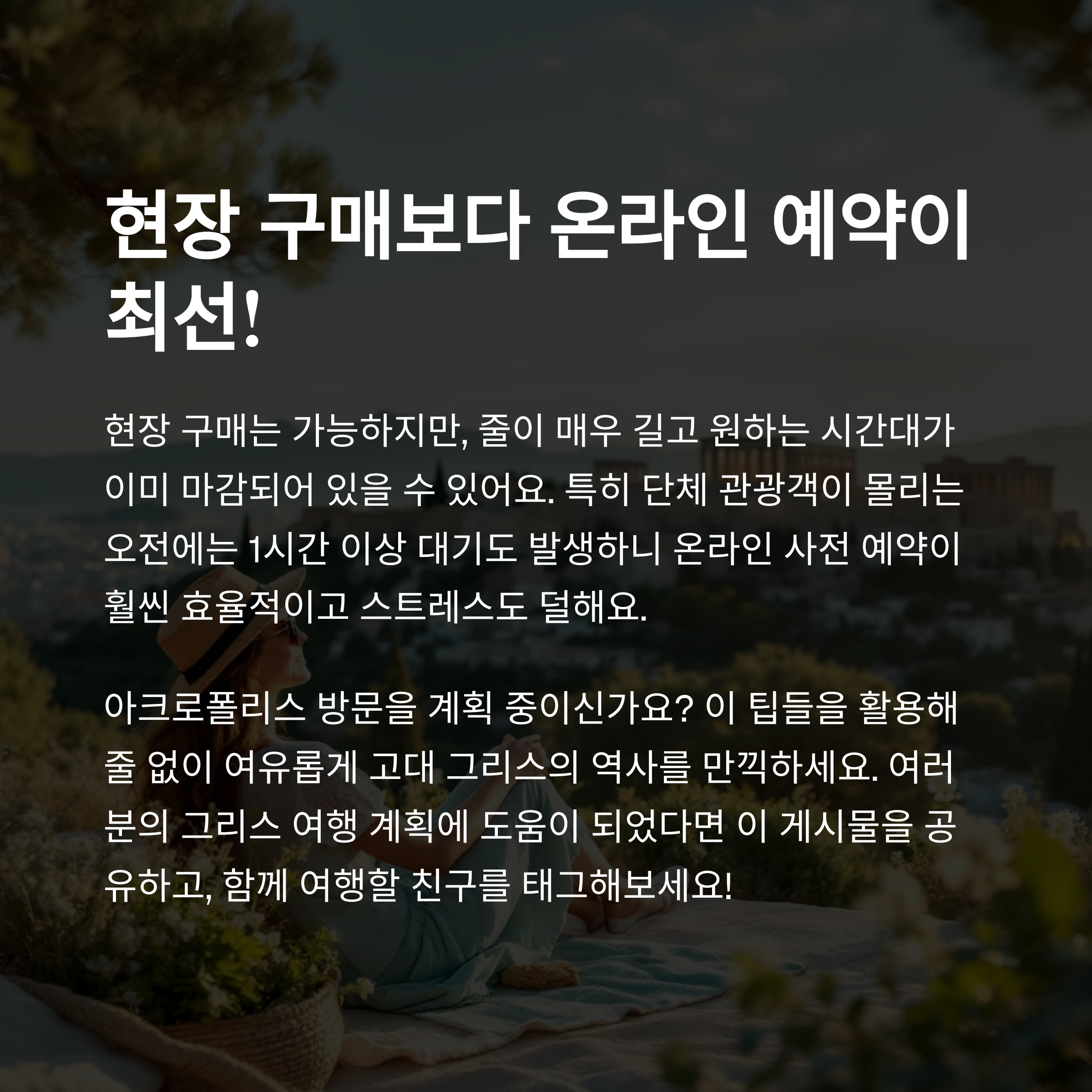 이번 글에서는 아크로폴리스를 빠르고 똑똑하게 관람하기 위한 입장권 예약 팁을 알려드릴게요.