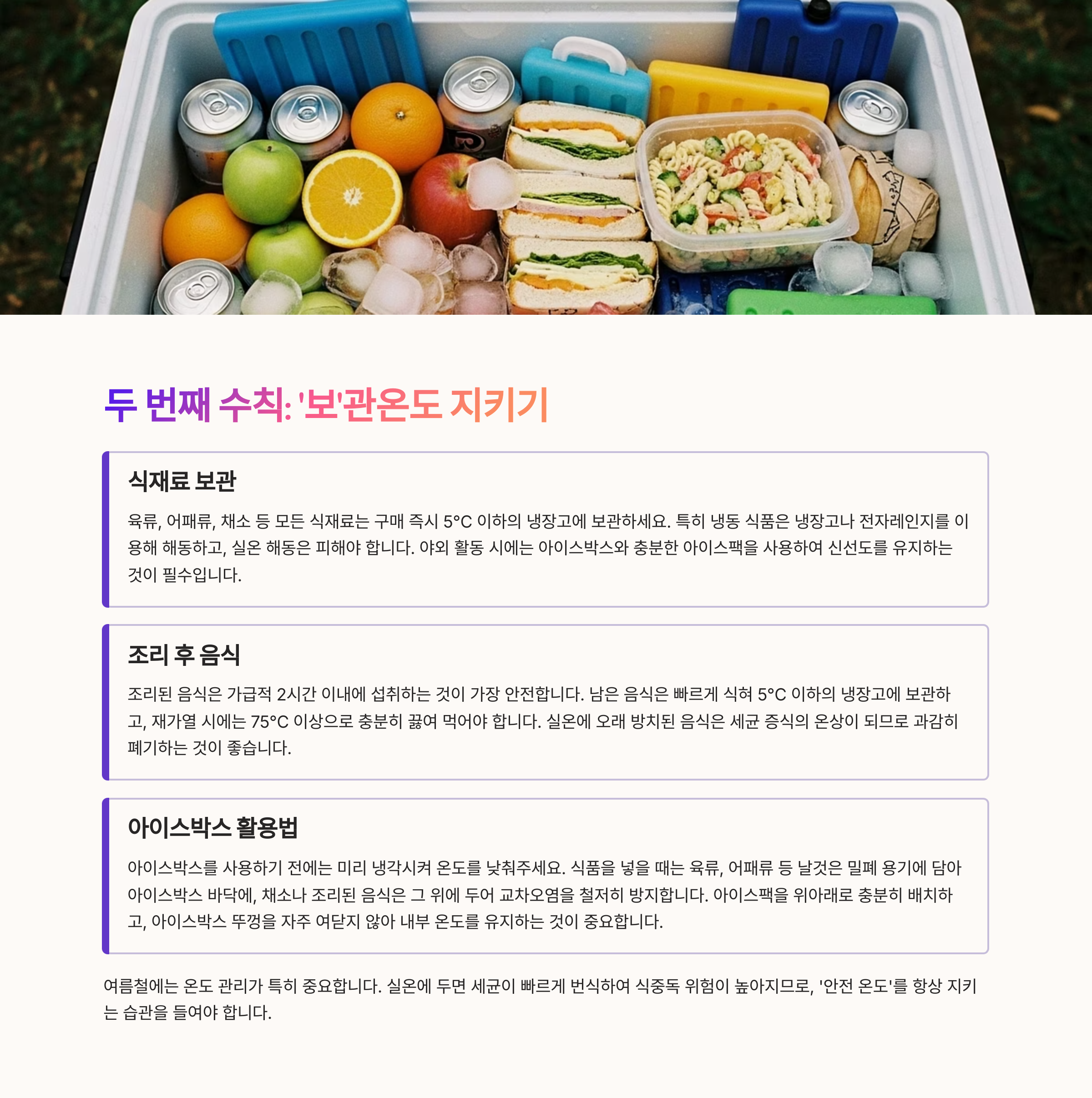 여름철에는 식재료와 조리된 음식 모두 온도에 민감해요.