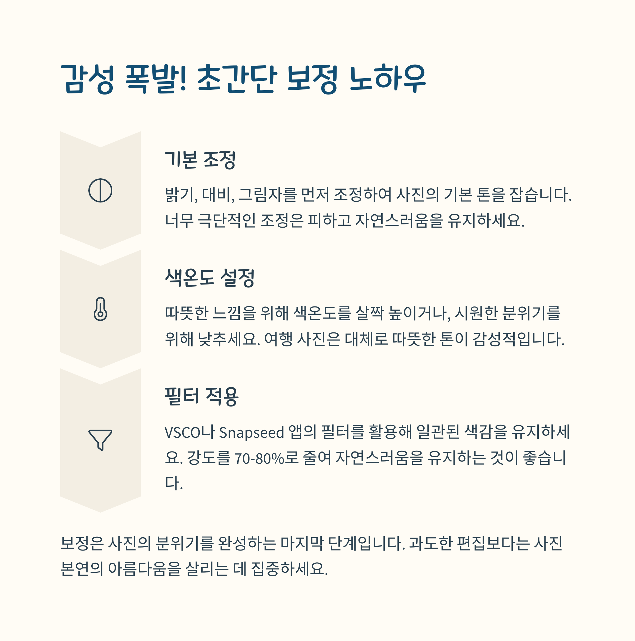 "사진 보정은 과하지 않게, 원래 분위기를 살리는 게 중요합니다."