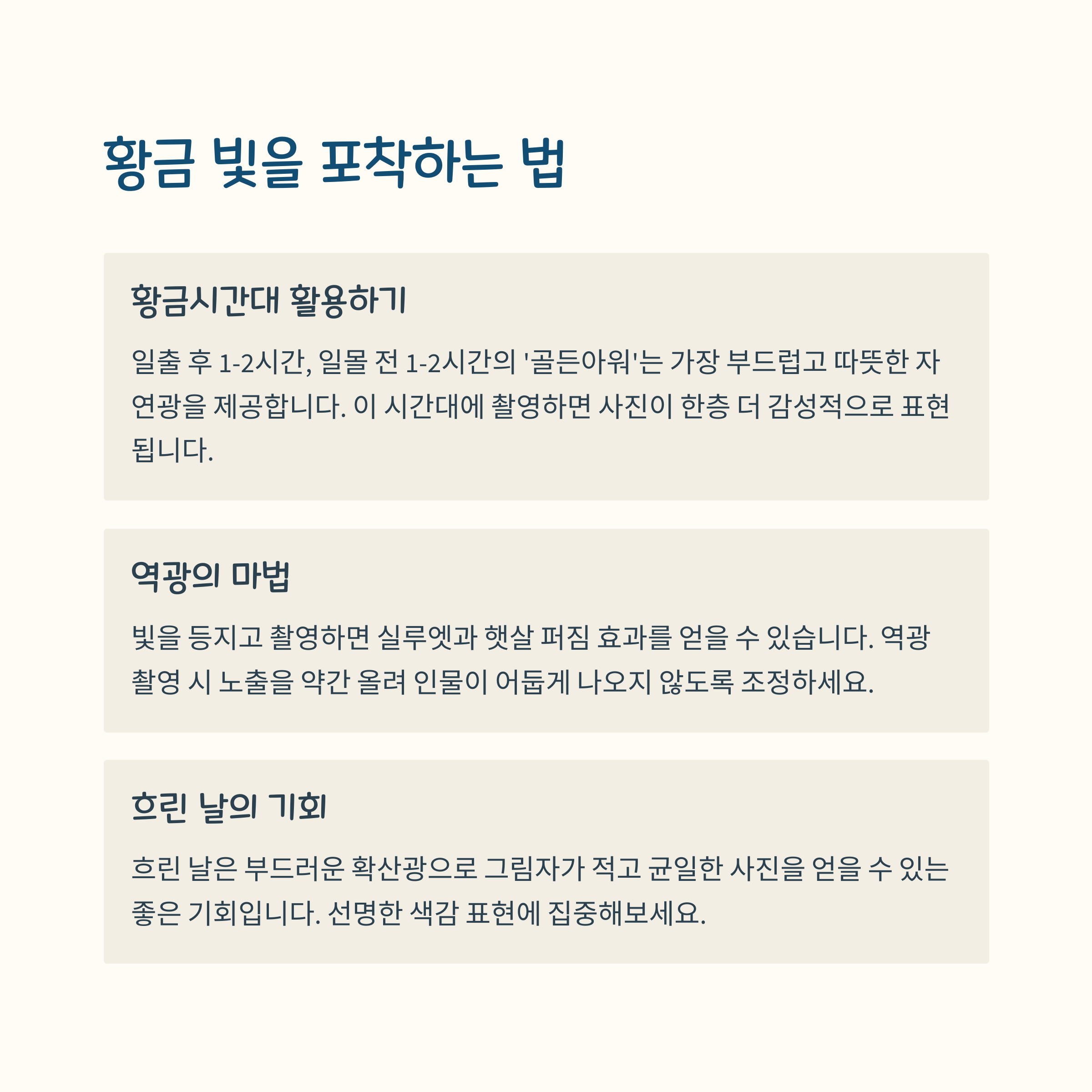 자연광을 읽는 법, 빛만 알아도 사진이 달라진다