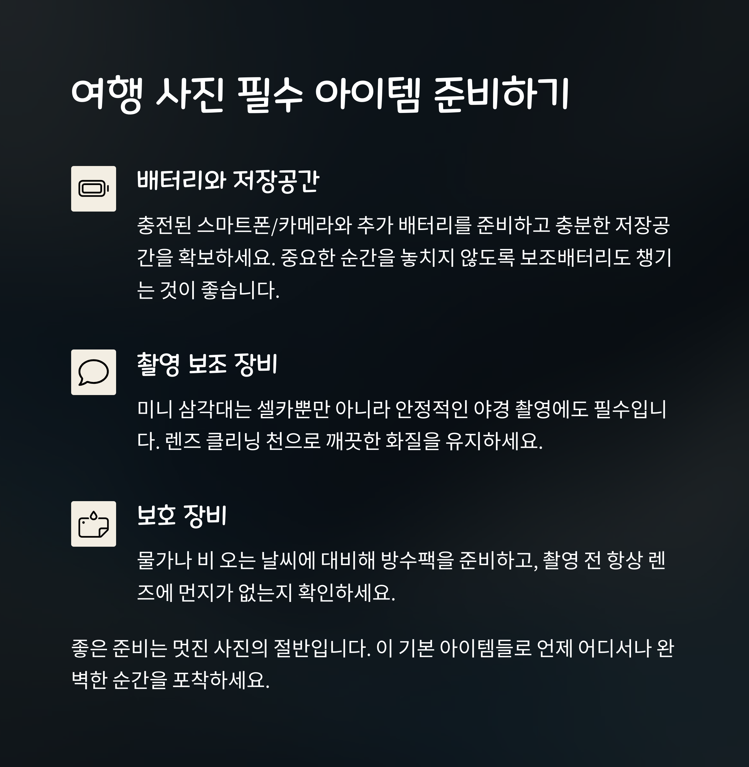 - 둘째, 여분의 배터리와 메모리카드 챙기기