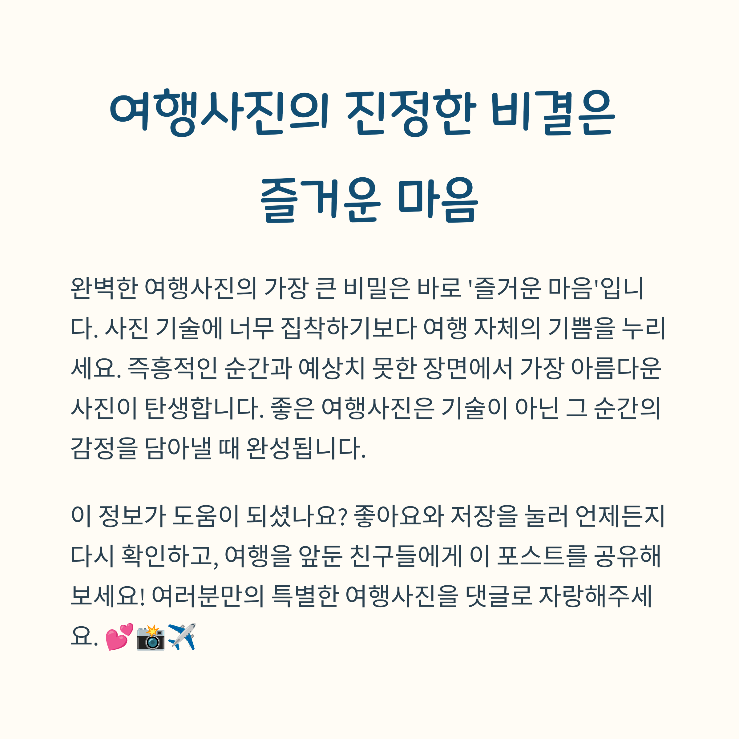 완벽한 사진을 찍겠다는 압박감보다는, 순간을 즐기면서 자연스럽게 담아보세요.
