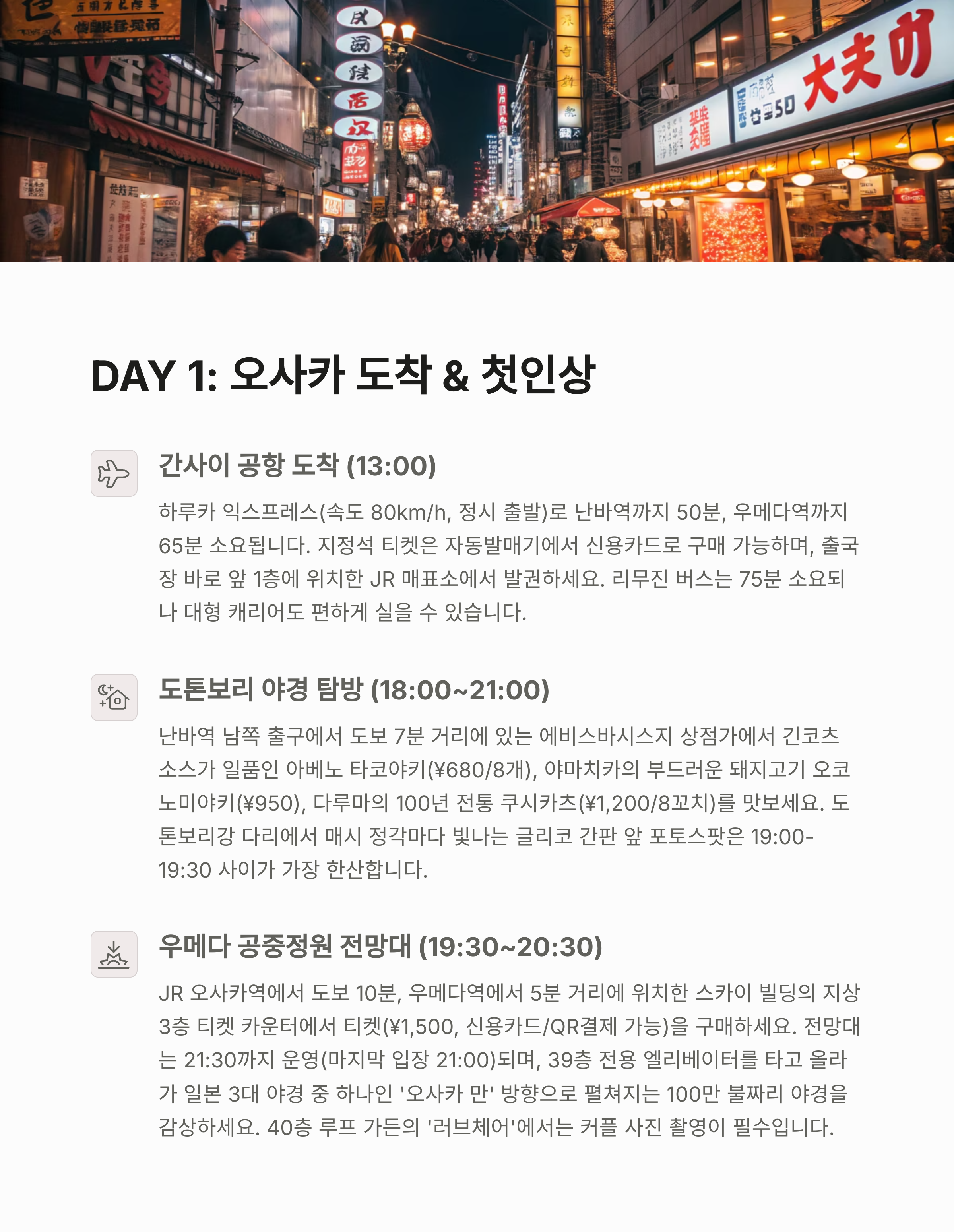 - 오사카 감성 입문: 야경 + 시장 산책