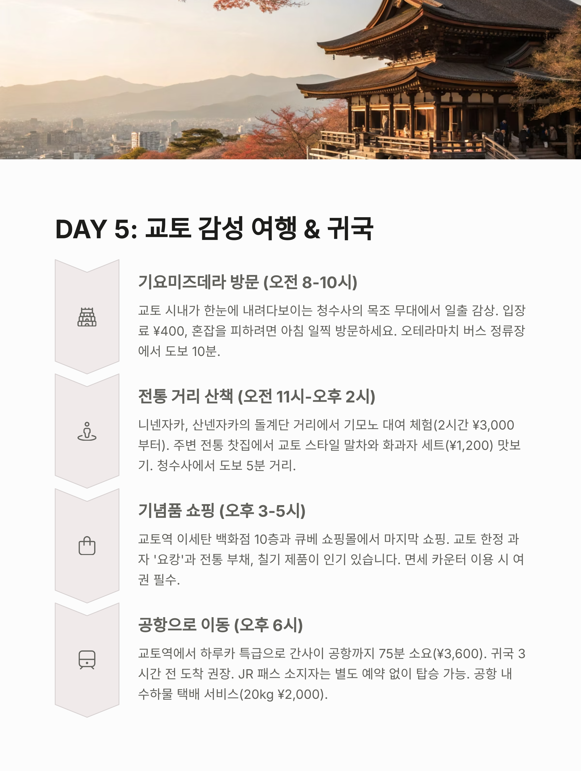 - 교토역 이동 → 간사이공항 귀국