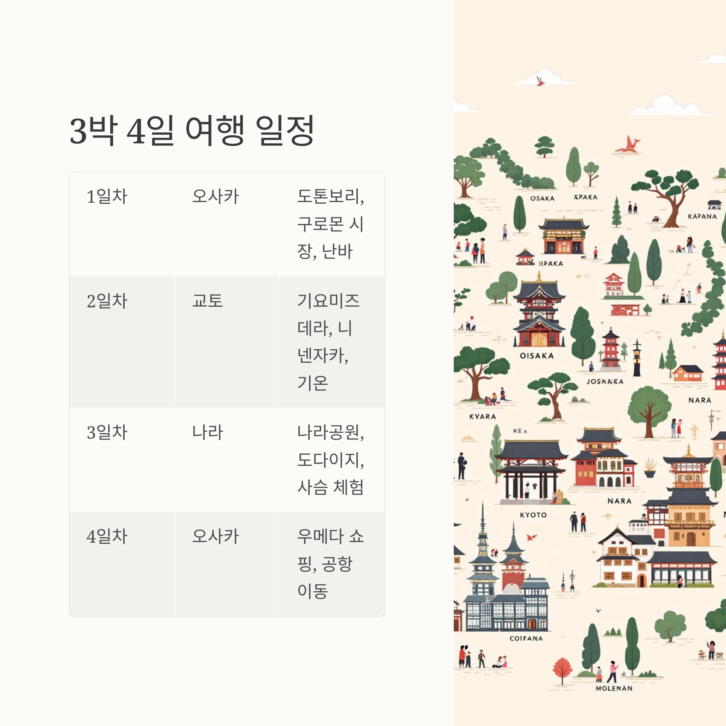 오사카 중심으로 즐기는 3박 4일 여행, 초보자도 쉽게 따라가는 루트