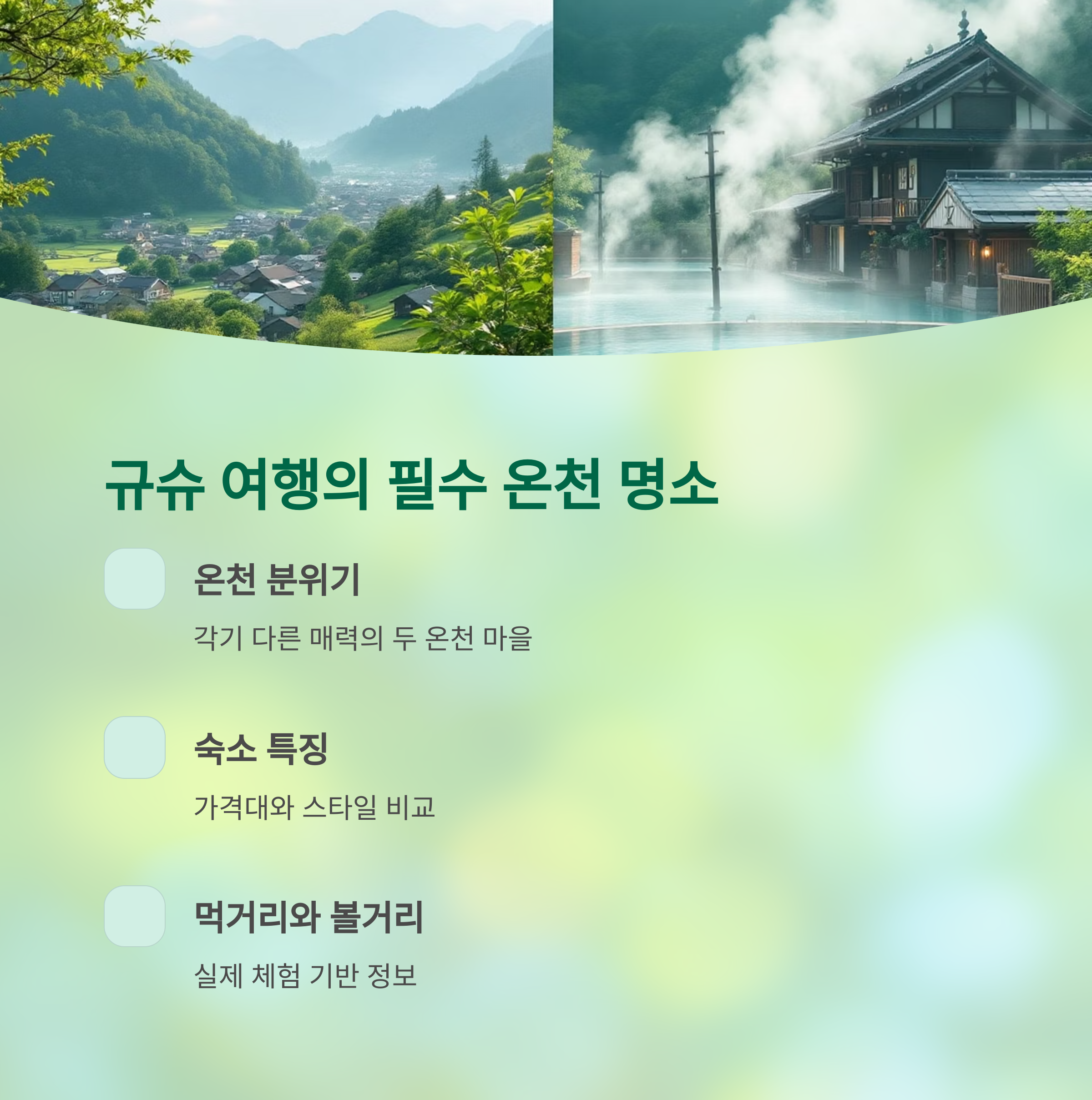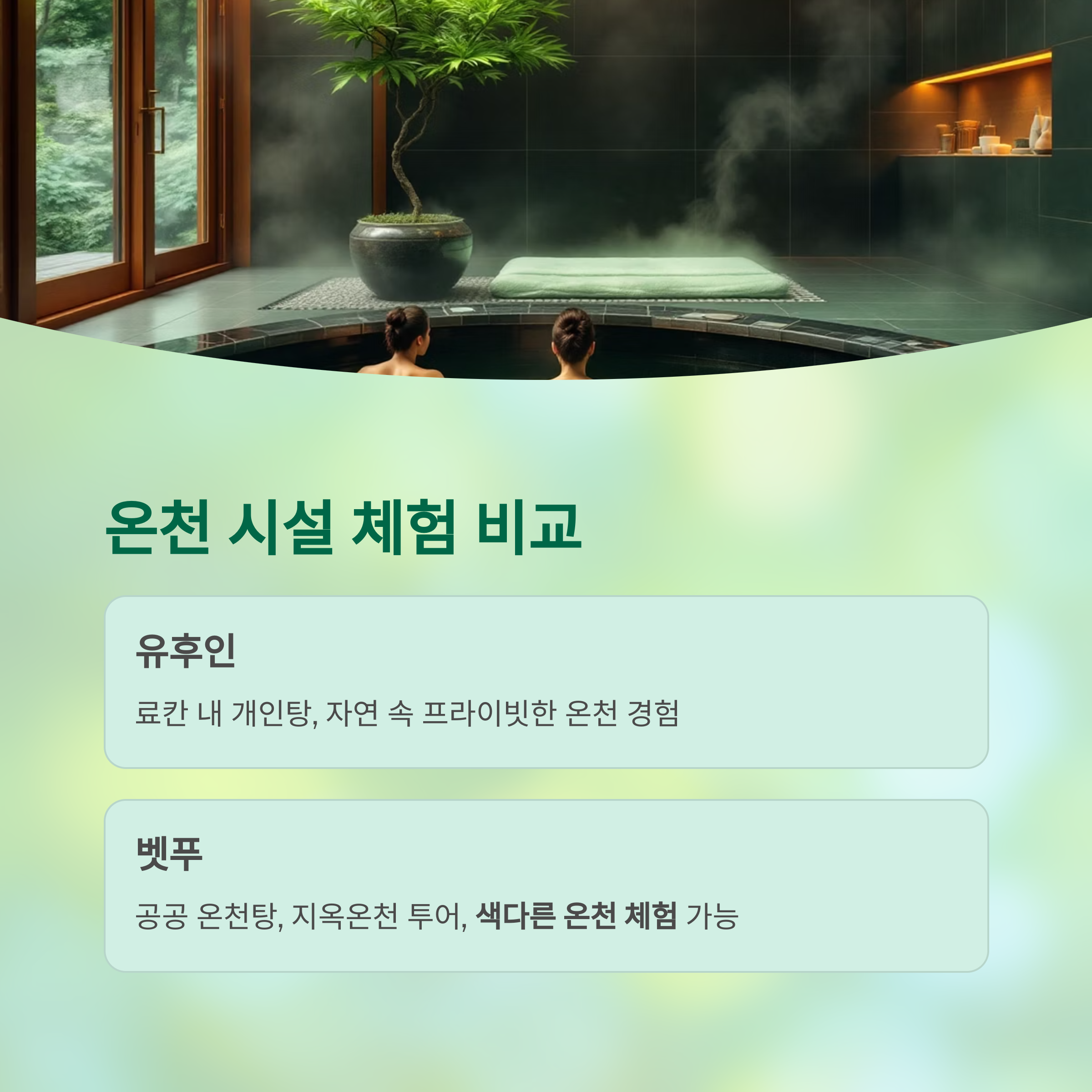 이 글에서는 직접 체험한 여행 경험을 바탕으로 온천 분위기, 숙소, 거리 풍경, 먹거리 등 다양한 요소를 비교하며