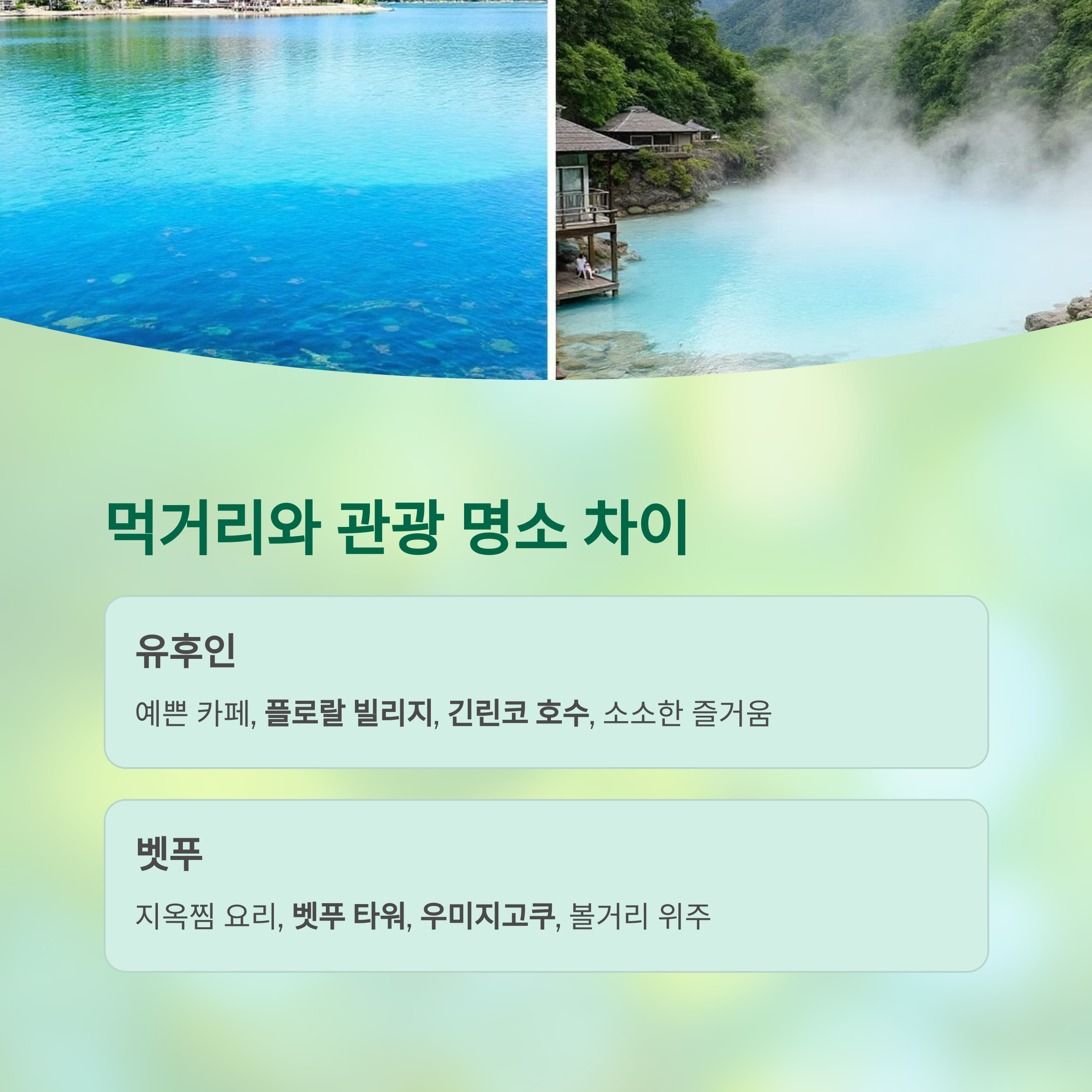 일본 규슈 여행에서 빠질 수 없는 온천 명소 유후인과 벳푸는 각기 다른 매력을 가지고 있습니다.